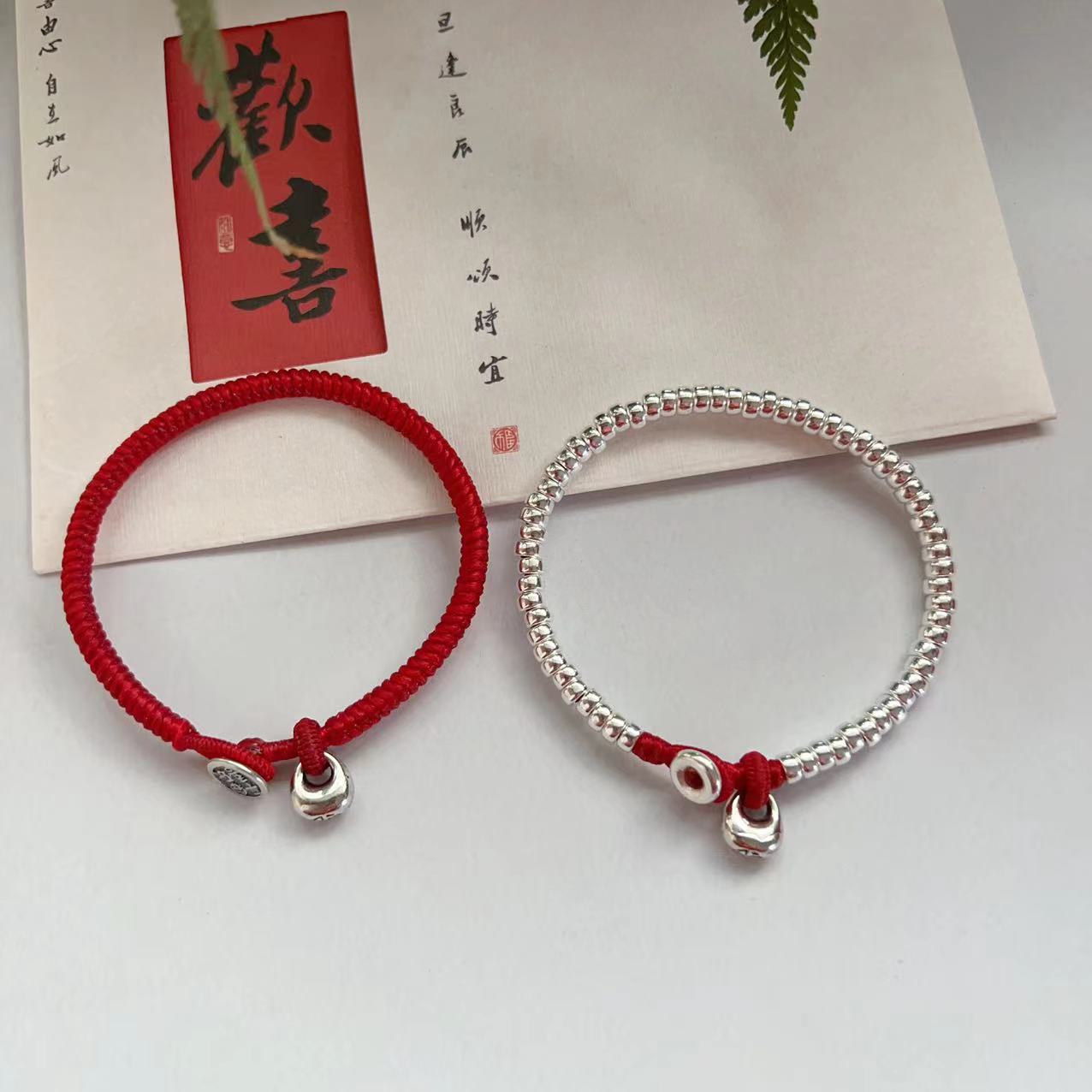 새해 동물의 해를 위한 손으로 엮은 완제품, 하이글로시 타이 왁스 실버 버클, 다이아몬드 매듭 레드 팔찌, 커플, 절친, 부모-자식 스타일스토어 가기