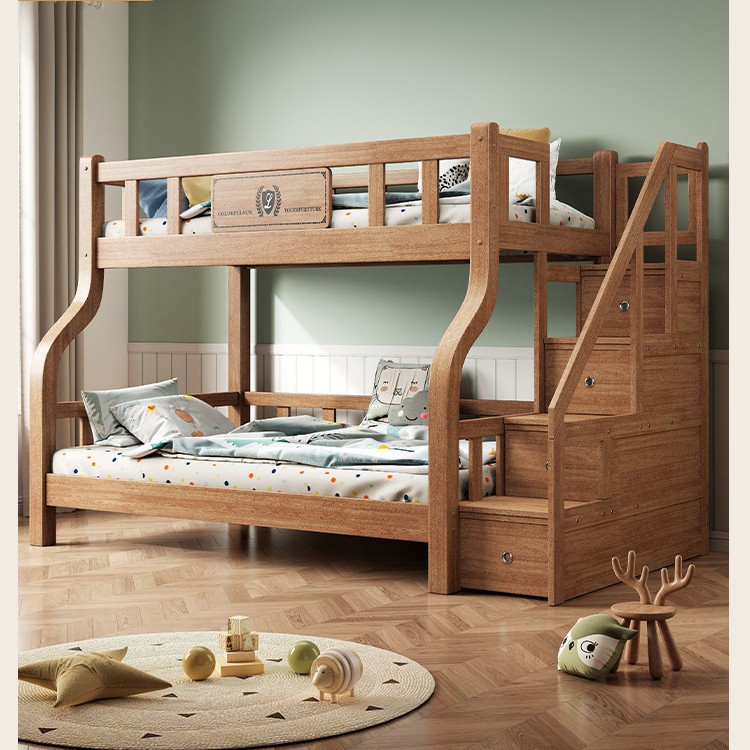 이층침대, 이층침대, 소형가정용 원목색 고무나무 원목, 성인용 하이베드 및 로우베드, 어린이용 이층침대