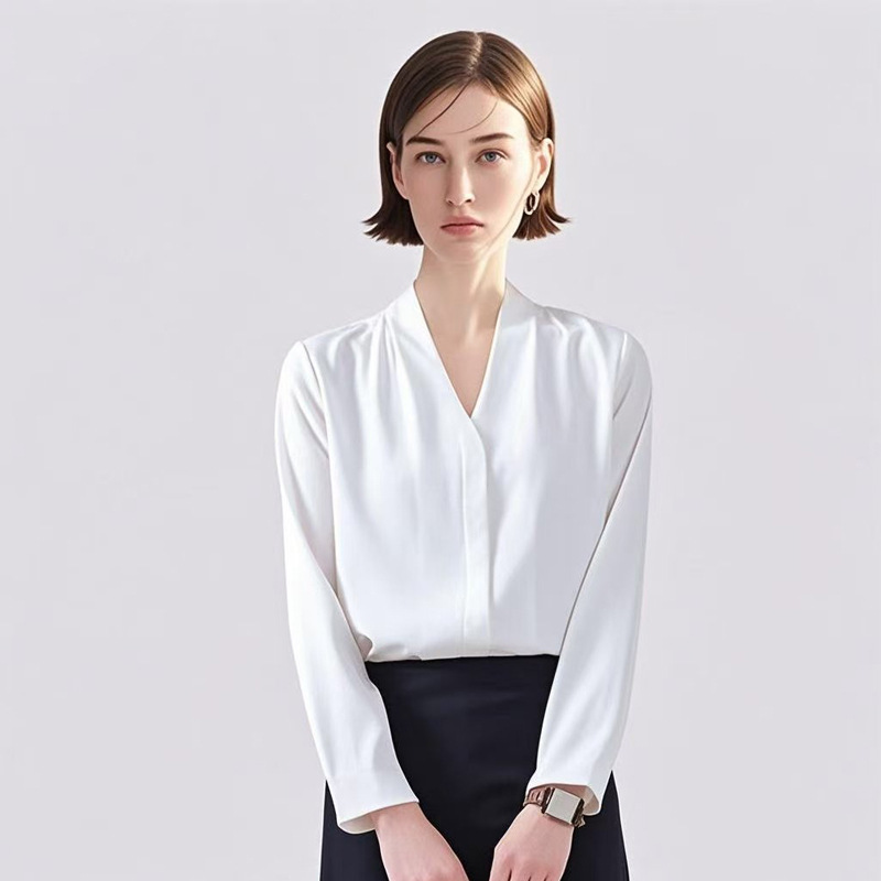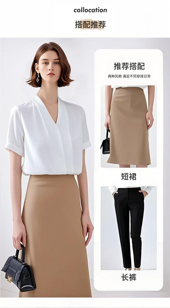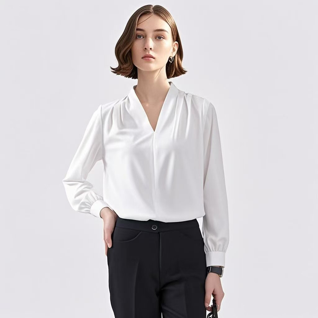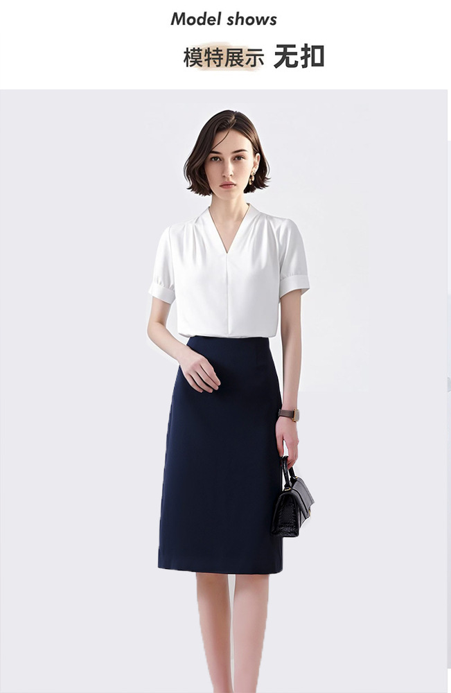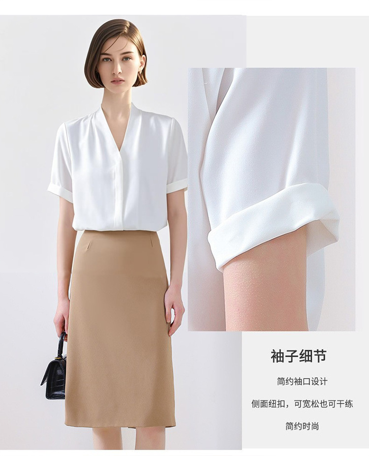 여름 여성을 위한 쉬폰 화이트 반팔 셔츠, 가벼운 럭셔리 브이넥, 전문적인 기질, 통근 면접, 포멀 드레이프 셔츠스토어 가기