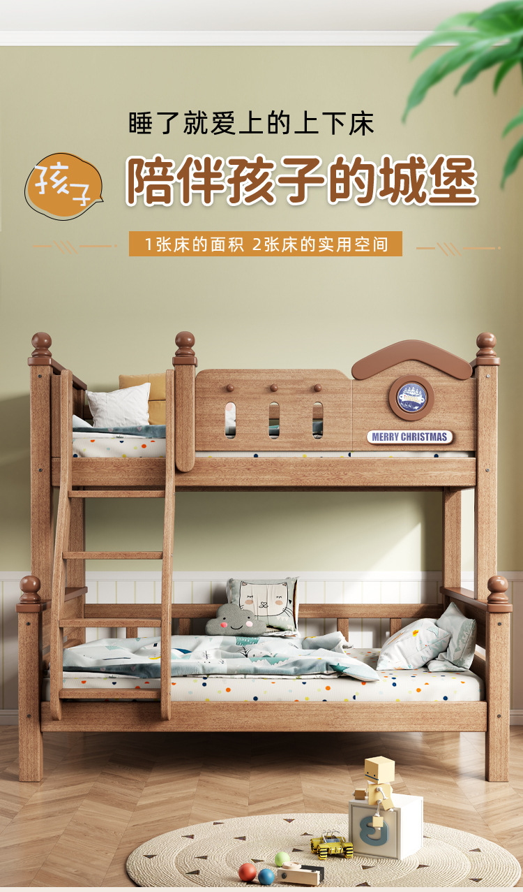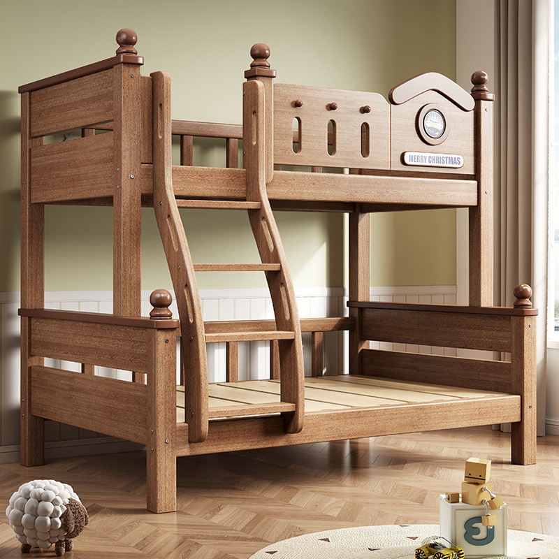 침대, 현대적이고 간단한 고무나무 이층 침대, 사다리 이층 침대, 원목 높낮이 침대, 어린이 침대, 높낮이 원목 침대
