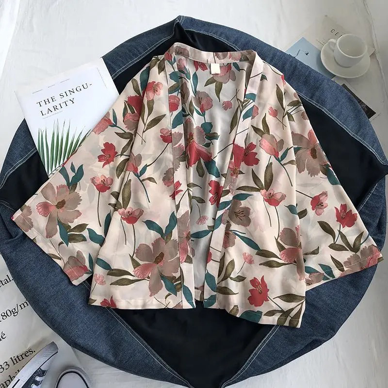 여성용 쉬폰 셔츠, 꽃무늬 여름 얇은 다용도 요정 탑, 짧은 숄 재킷, 루즈한 쉬폰 셔츠