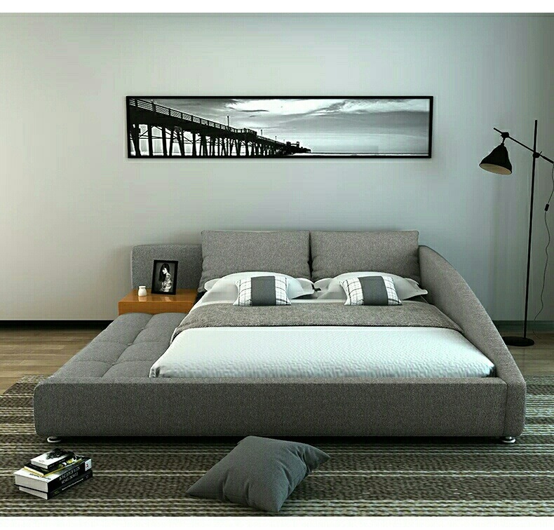 마스터 침실 북유럽 다다미 패브릭 침대 심플 모던 침실 다다미 침대 미니멀리스트 소프트 침대 이탈리안 스타일 탈부착 및 세탁 가능스토어 가기
