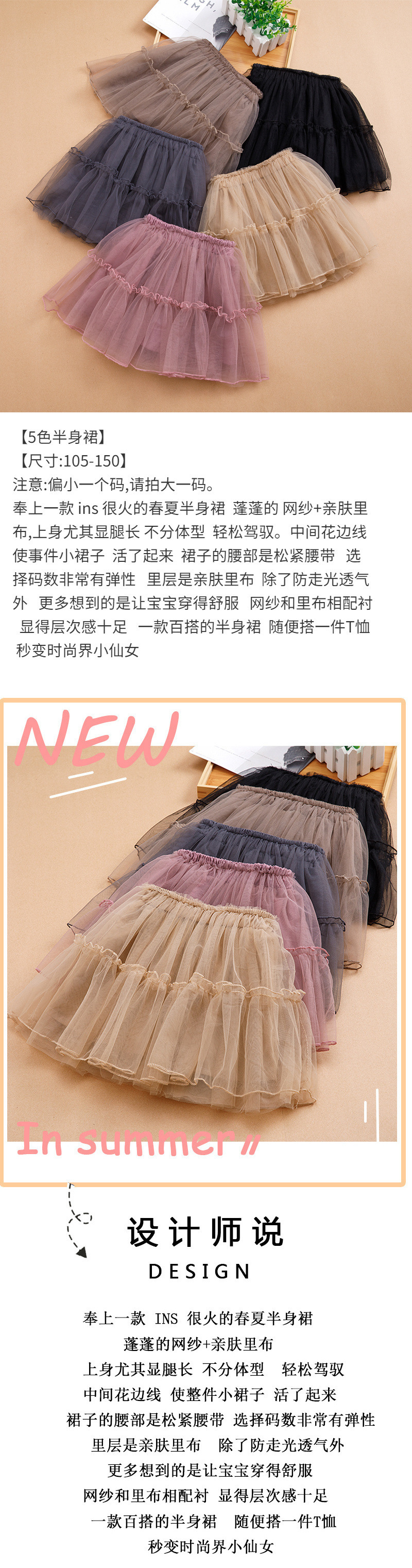 여자 스커트 거즈 스커트 2025 여름 새로운 어린이 공주 스커트 퍼프 스커트 여자 다목적 외국 스타일 짧은 스커트