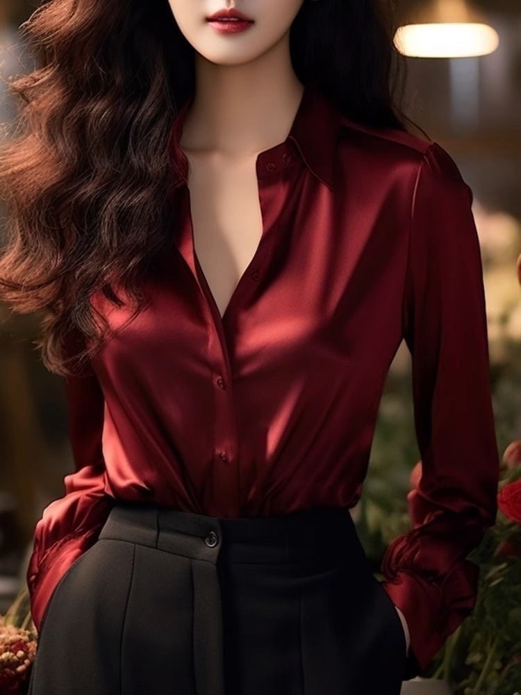 빠르게 구매하세요! [브로큰 코드 실크 셔츠] 여성용 멀버리 실크 고급 셔츠 긴팔 신상 루즈 탑