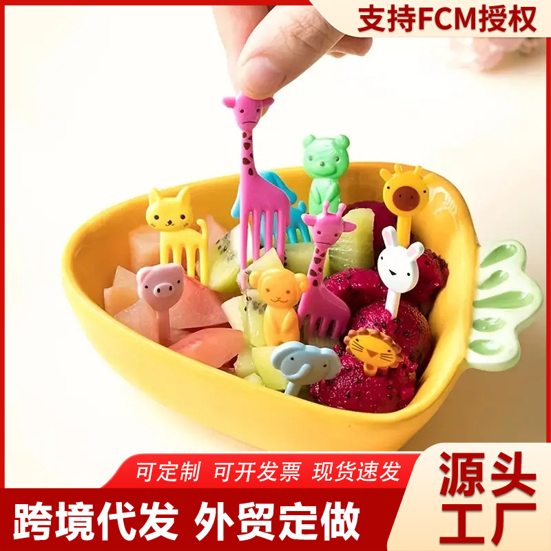 국경 간 어린이 만화 과일 포크 세트 동물 귀여운 미니 도시락 상자 크리 에이 티브 플라스틱 장식 식품 등급