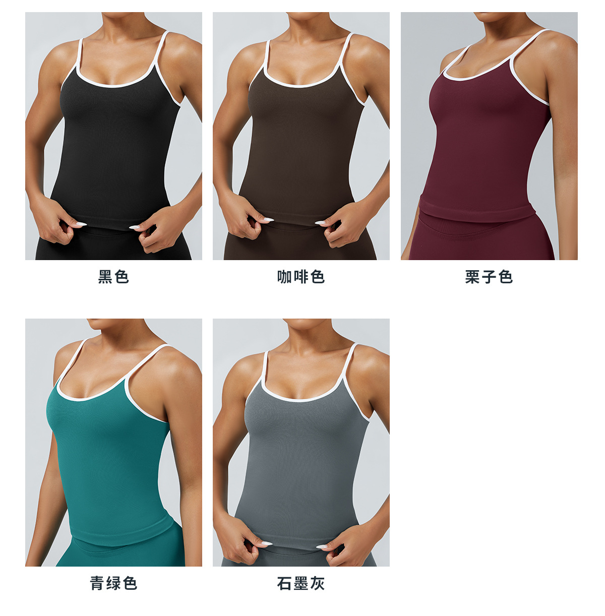 국경 유럽과 미국의 꽉 끼는 대비 색상 스포츠 조끼 여성 등받이 요가 조끼 피트니스 의류 러닝 요가 탑 조끼