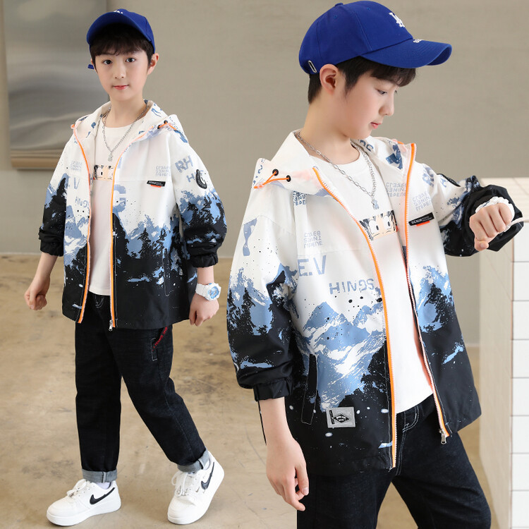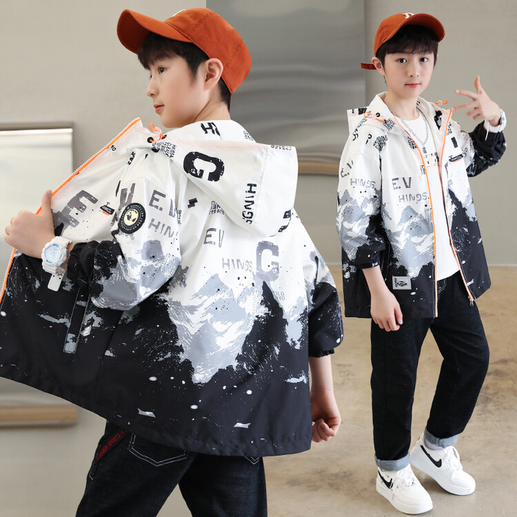 아동복 소년 봄 재킷 2025 새로운 어린이 봄, 가을 스타일 중대형 어린이 스타일 소년 후드 재킷