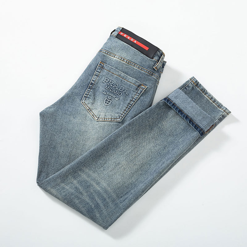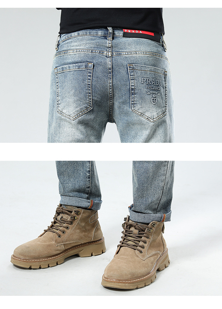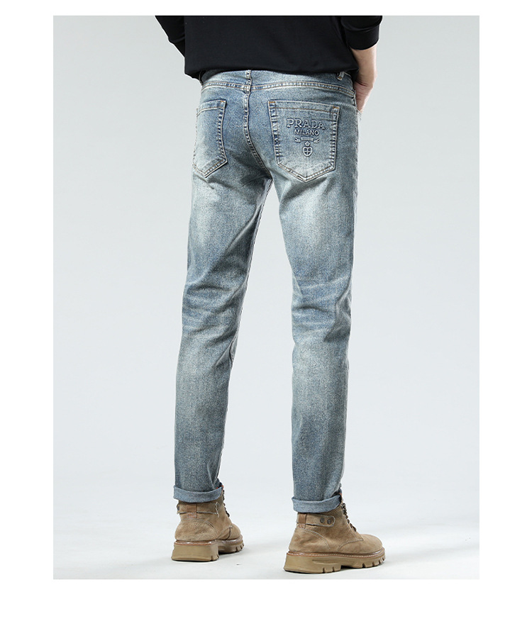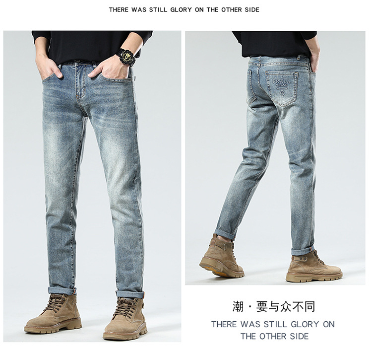 2025 신상 고급 남성 청바지 봄 여름 신축성 있는 슬림 스트레이트 브랜드 유럽 엠보싱 트렌디 브랜드 바지스토어 가기