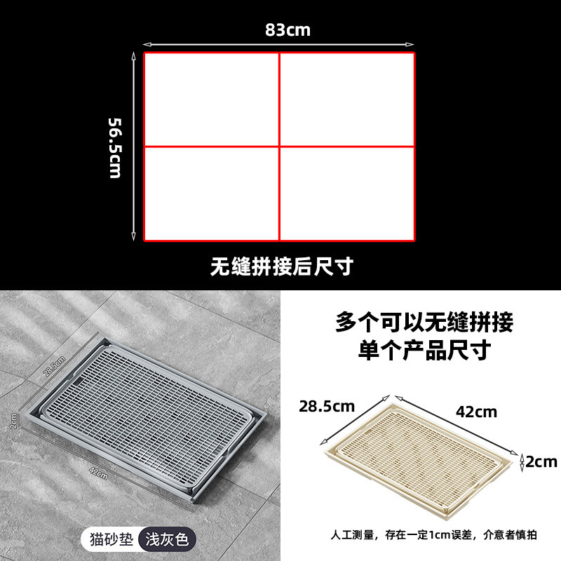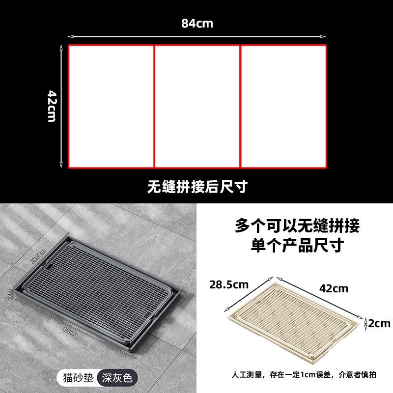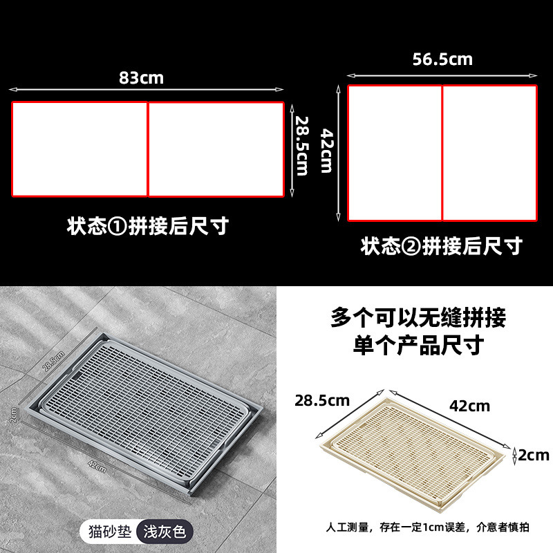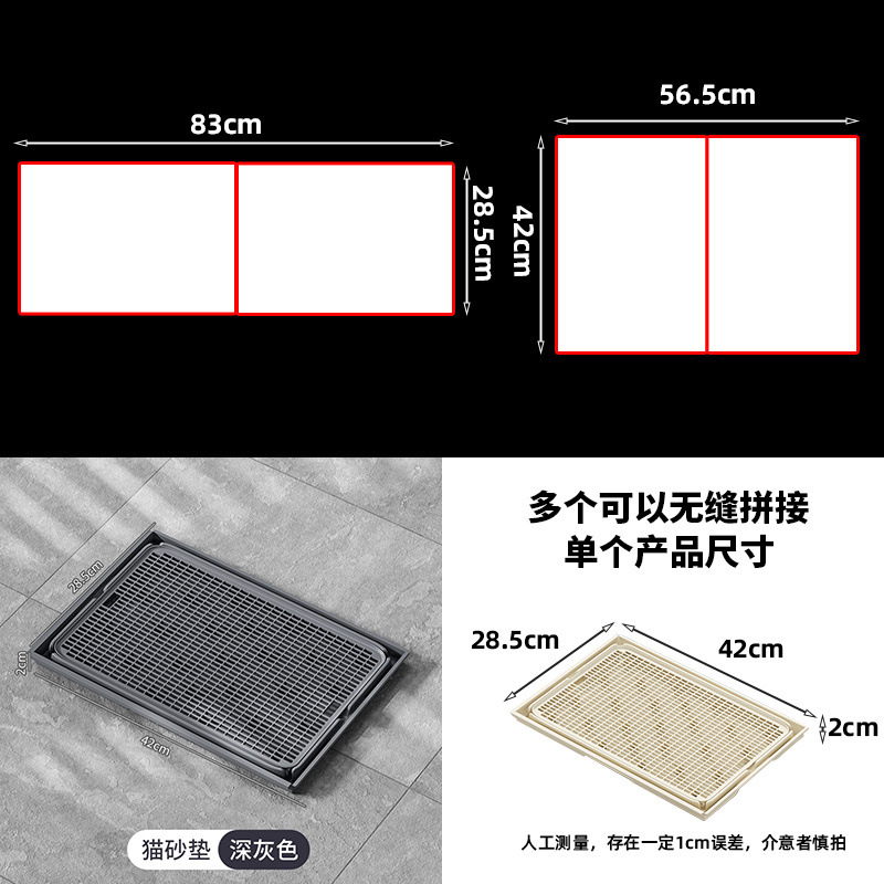 • 짙은 회색 고양이 모래 매트 2팩 [원활하게 접합 가능] + 미끄럼 방지 스티커
