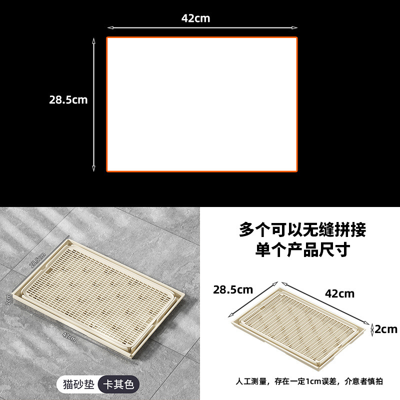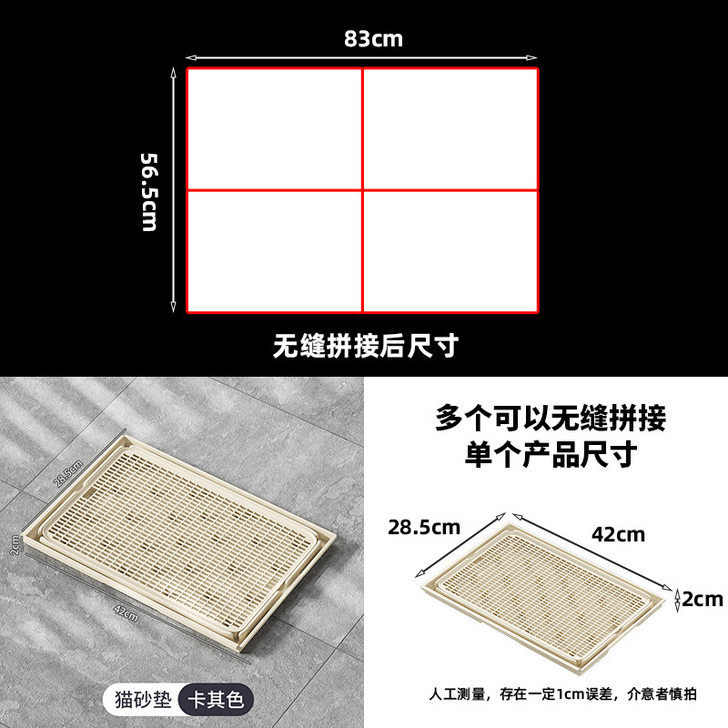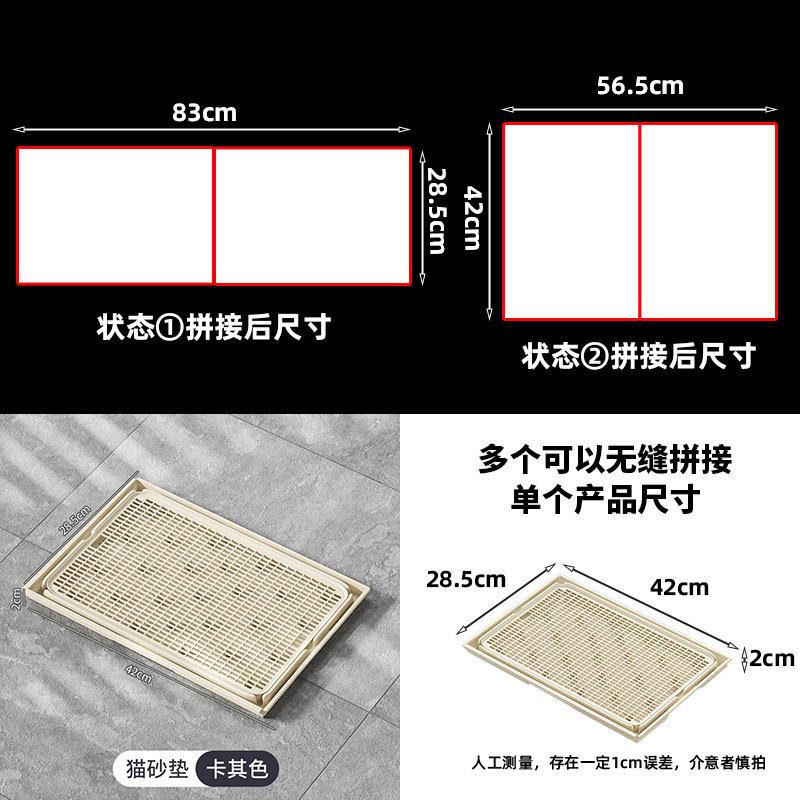 • 카키색 고양이 모래 매트 2팩 [원활하게 접합 가능] + 미끄럼 방지 스티커