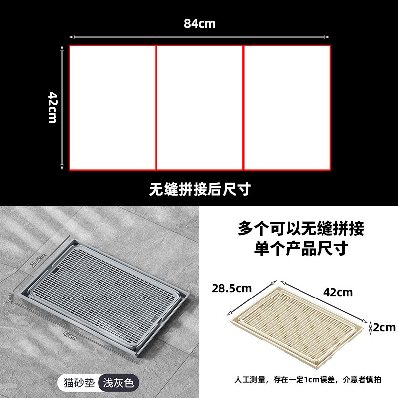 • 밝은 회색 고양이 모래 매트 3팩 [원활하게 접합 가능] + 미끄럼 방지 스티커