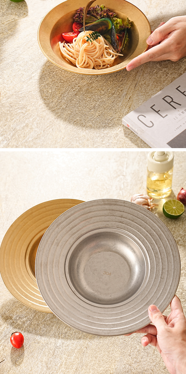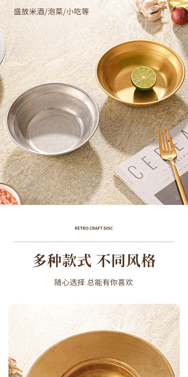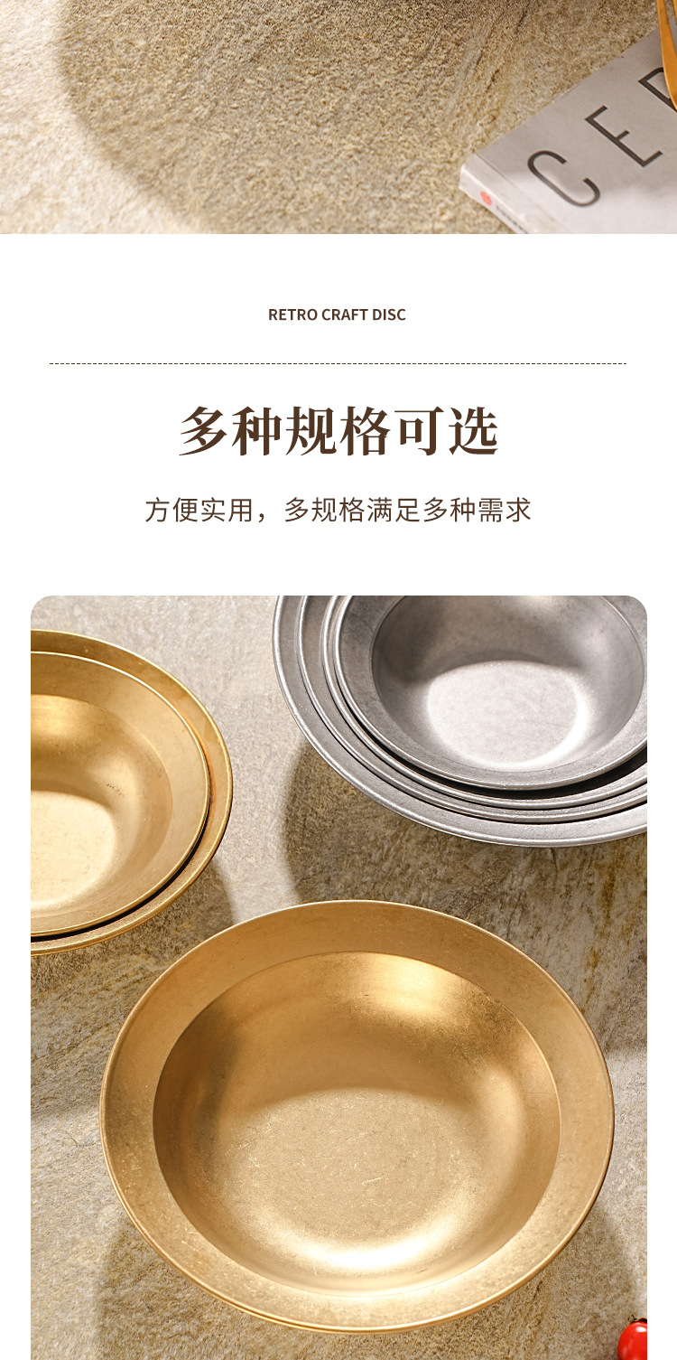 레트로 스테인레스 스틸 접시, 레트로 디너 접시, 두꺼운 산업 스타일 오래된 트레이, 커피 스낵 서양 음식 접시, 평평한 원형 접시