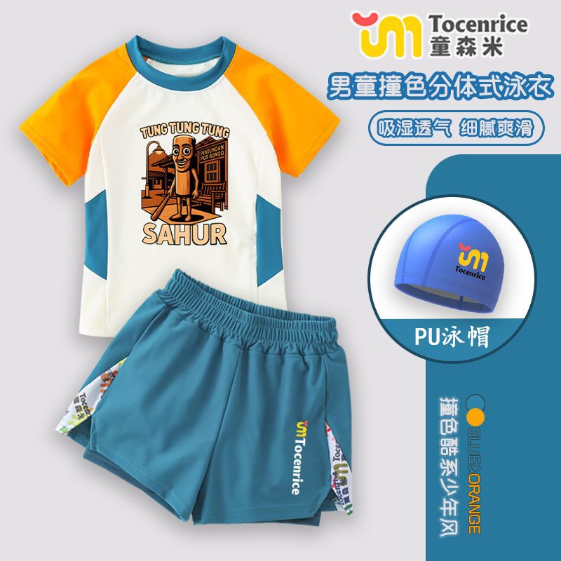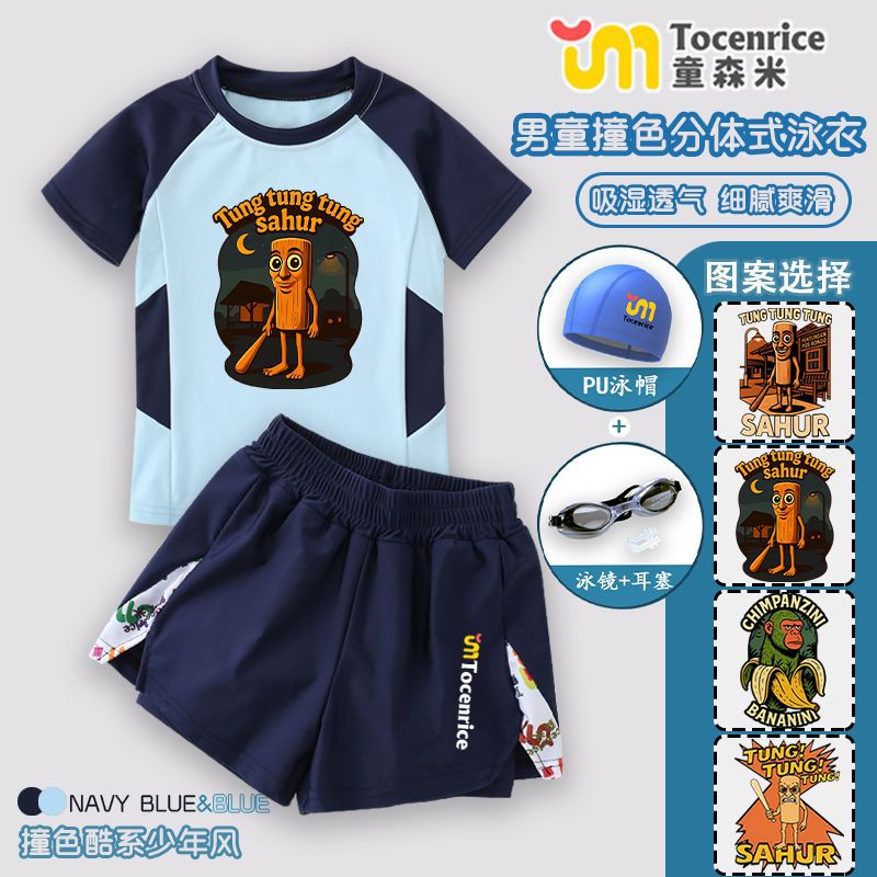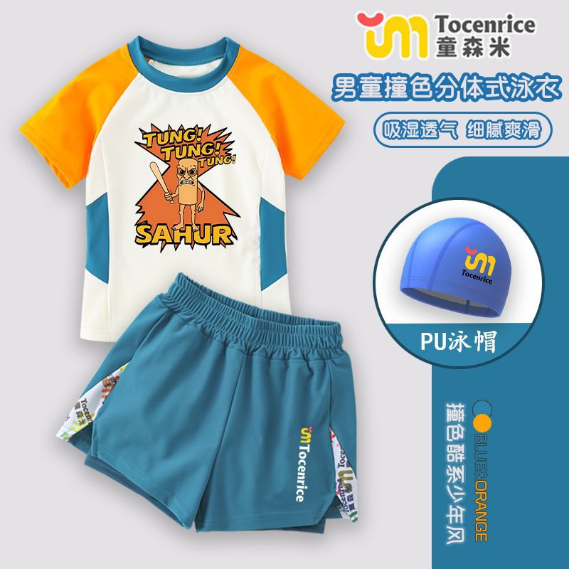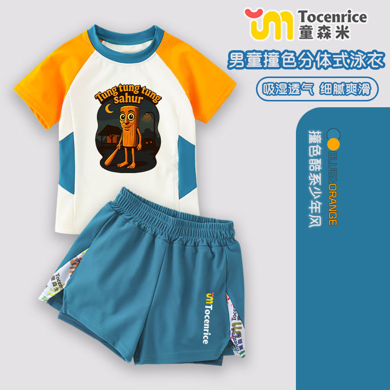 Tungtungsahur 산과 바다 어린이 수영복 스플릿 소년 전문 수영복