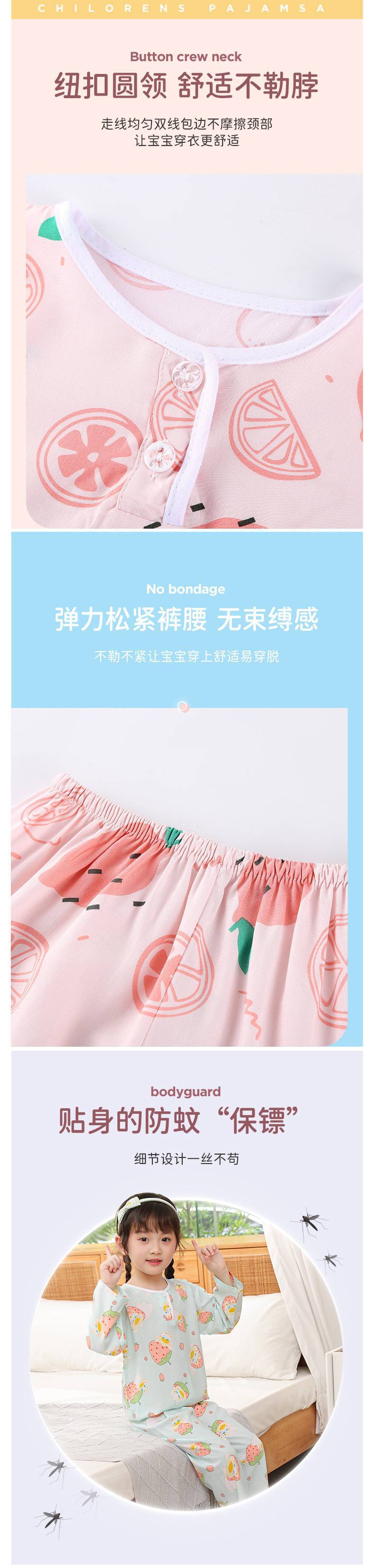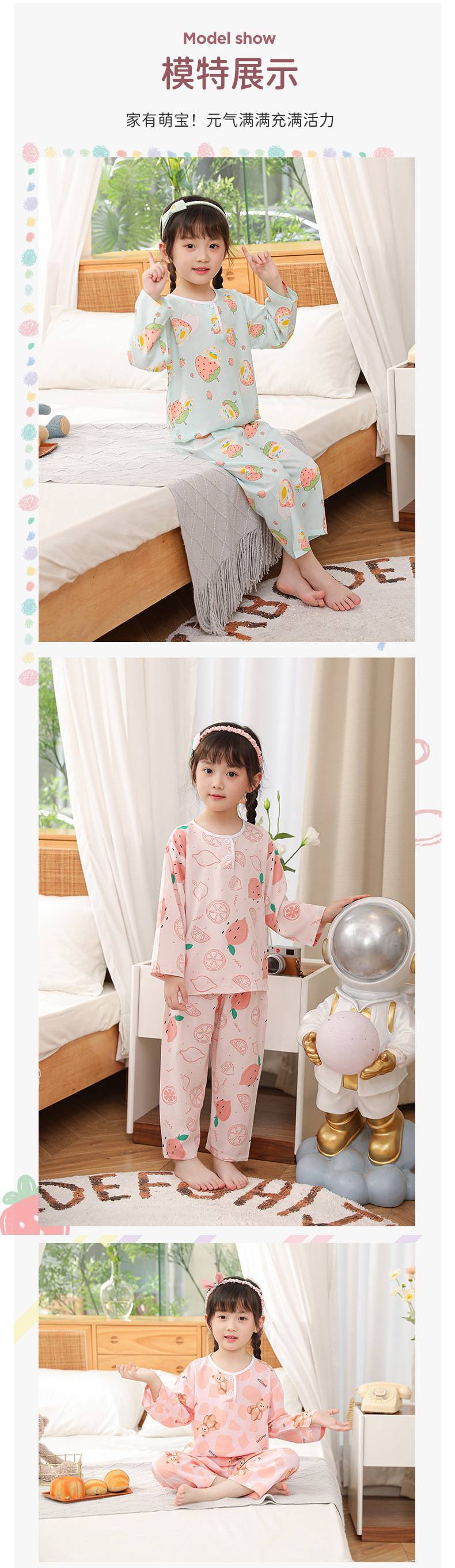 여름 긴팔 어린이 면 실크 잠옷 얇은 소년과 소년 면 실크 에어컨 아기 가정 의류 소녀 정장스토어 가기