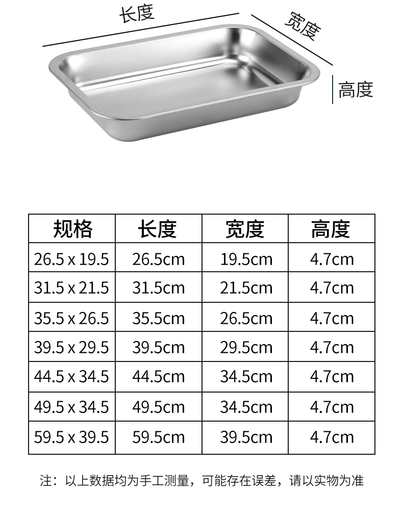 304 스테인리스 트레이, 사각 트레이, 깊은 직사각형 밥 트레이, 뷔페 트레이, 평평한 트레이, 찜 케이크, Ejiao 트레이스토어 가기