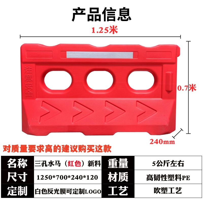 새로운 소재의 3구멍 워터 말 울타리, 이동식 격리 댐, 분리형 건설 가드레일, 페인트 플로우 성형 충돌 방지 버킷, 로드 콘스토어 가기