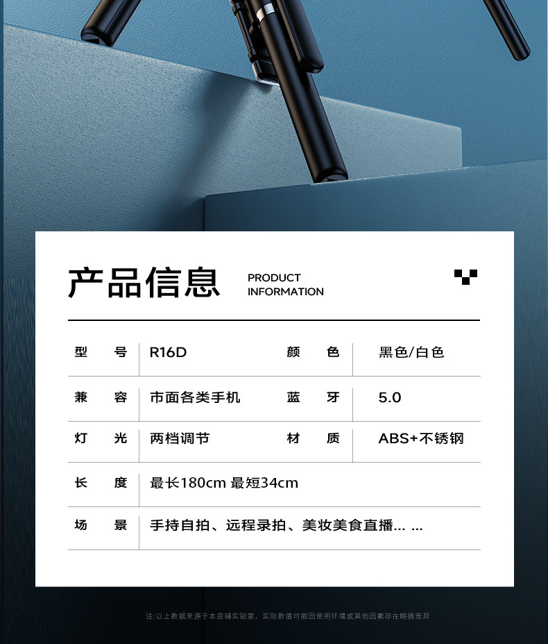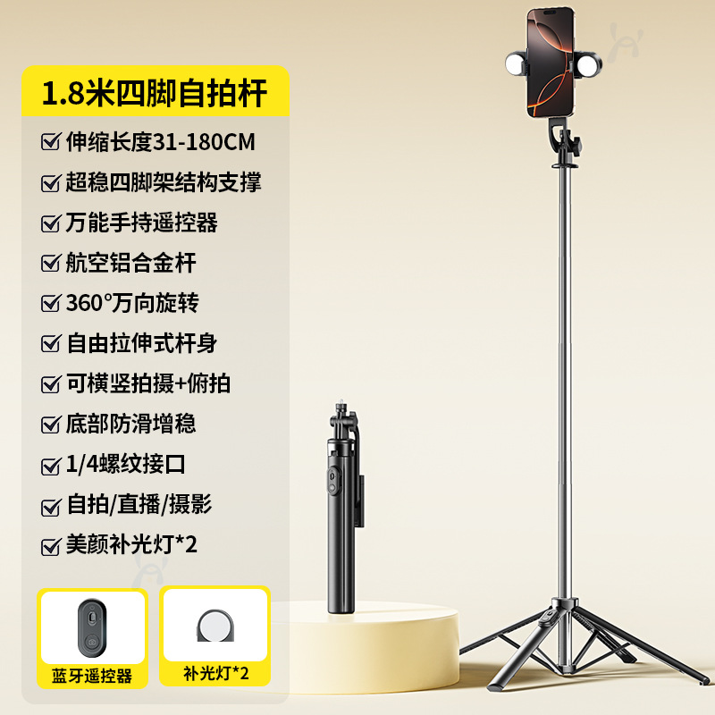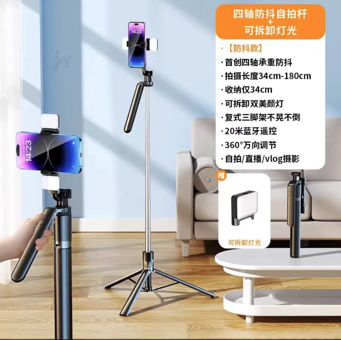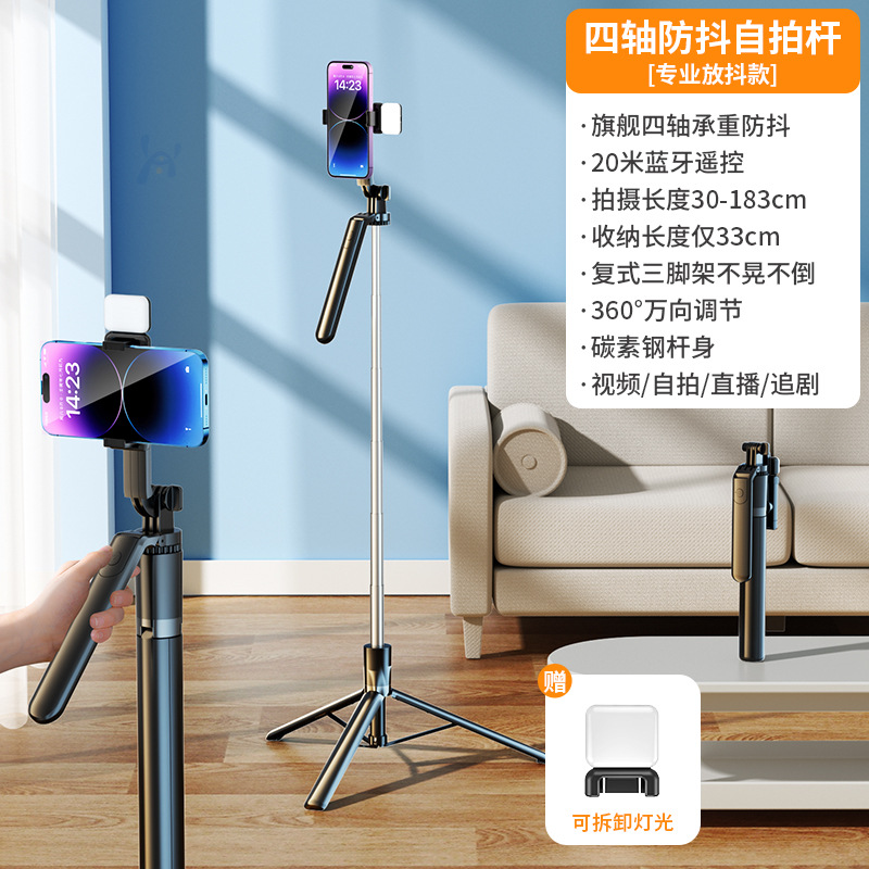 • 1.85m - 검정색 [4축 탄소섬유강] 초안정성 4각대◆무료 범용 Douyin 리모콘 + 듀얼 뷰티 램프.