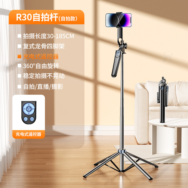 • 1.85m - 검정색 [4축 탄소섬유강] 초안정성 4각대◆무료 범용 Douyin 리모컨 + 단일 뷰티 램프.
