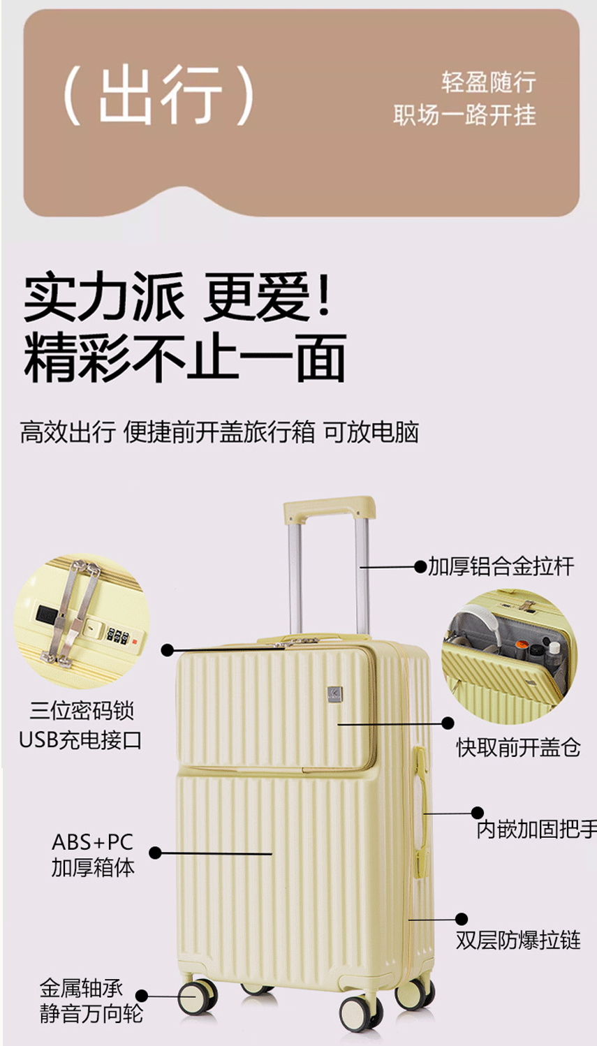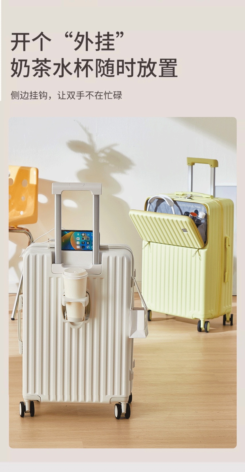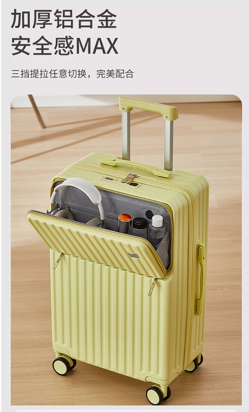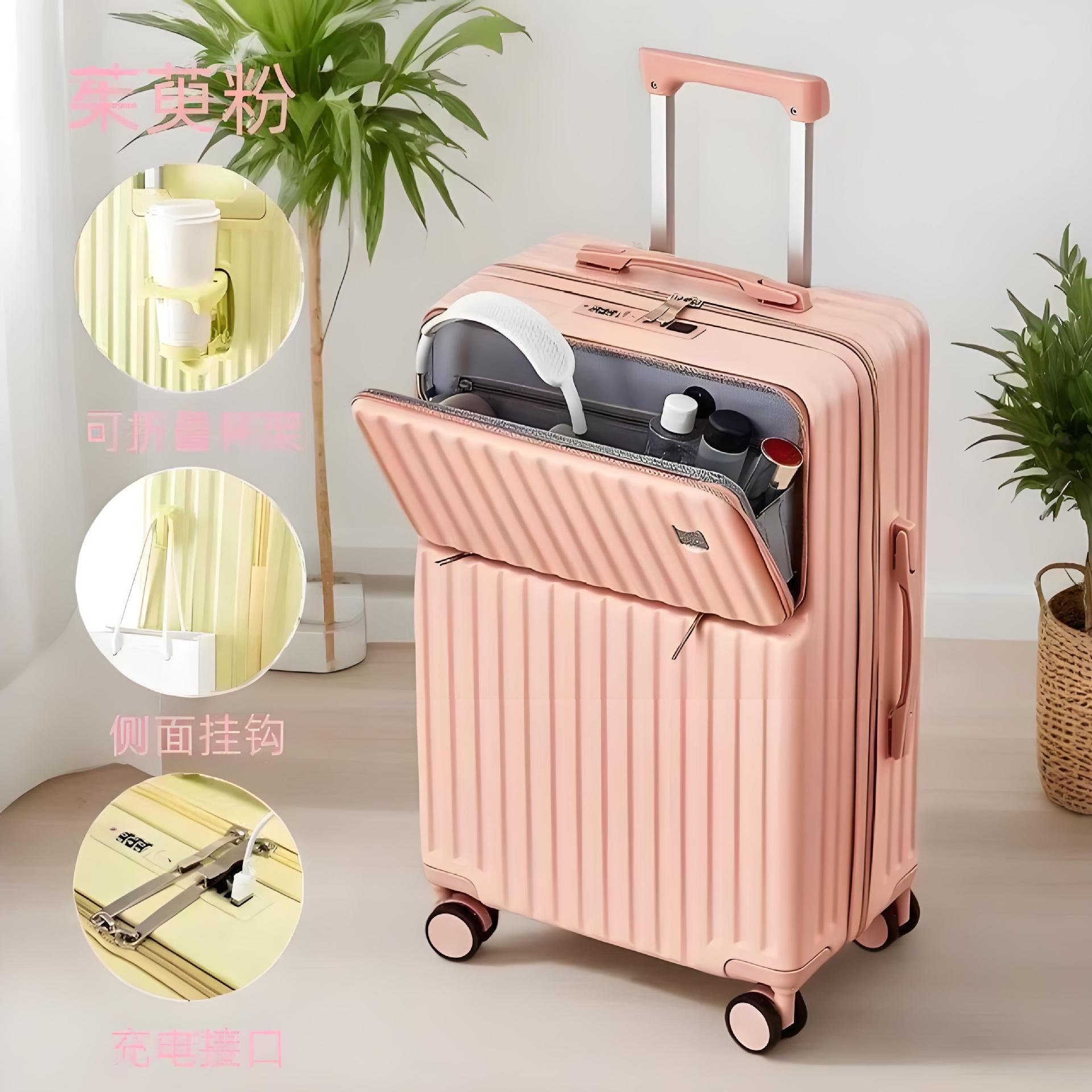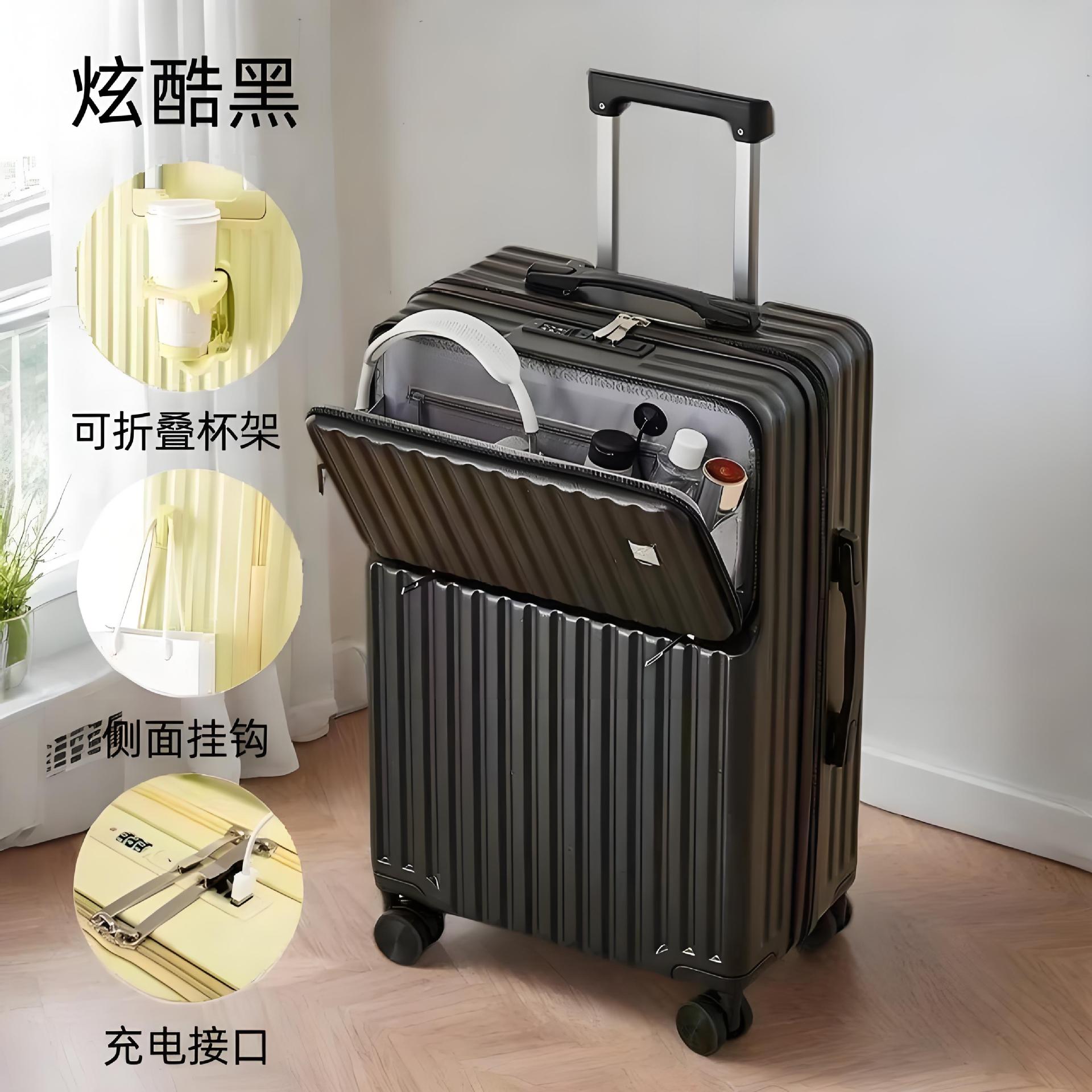 새로운 다기능 여행가방 PC 트롤리 케이스, 견고하고 내구성이 뛰어난 비밀번호 상자, 앞면 개폐식 커버, 24inch 수하물 수납 가능스토어 가기