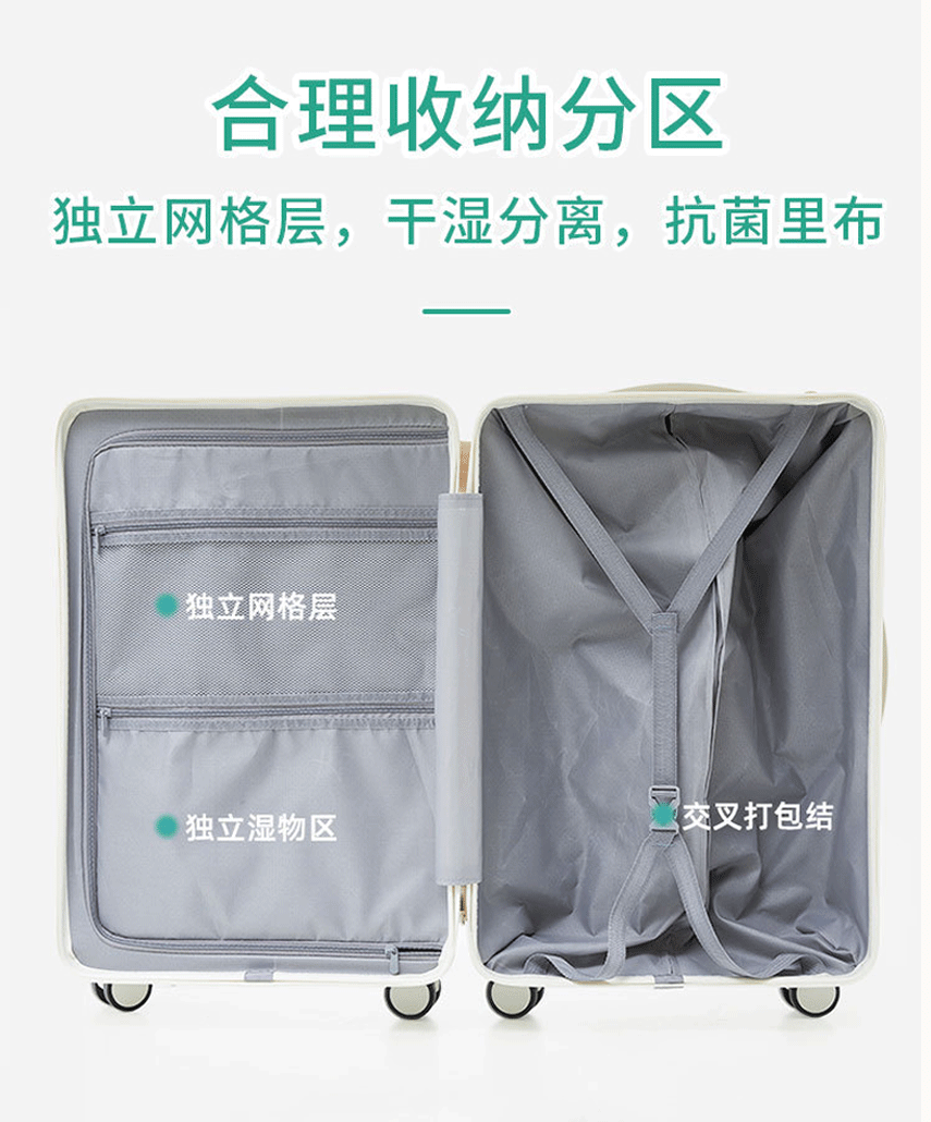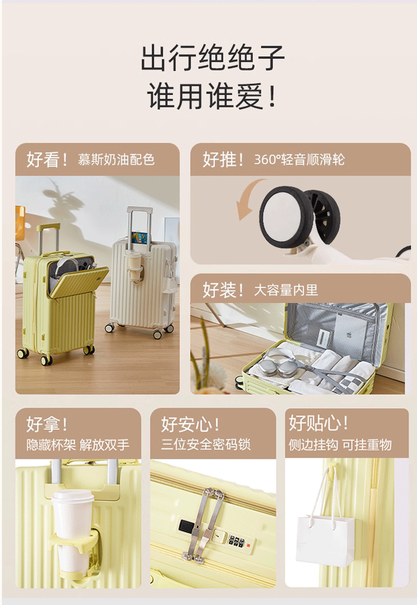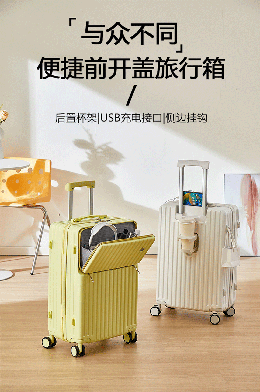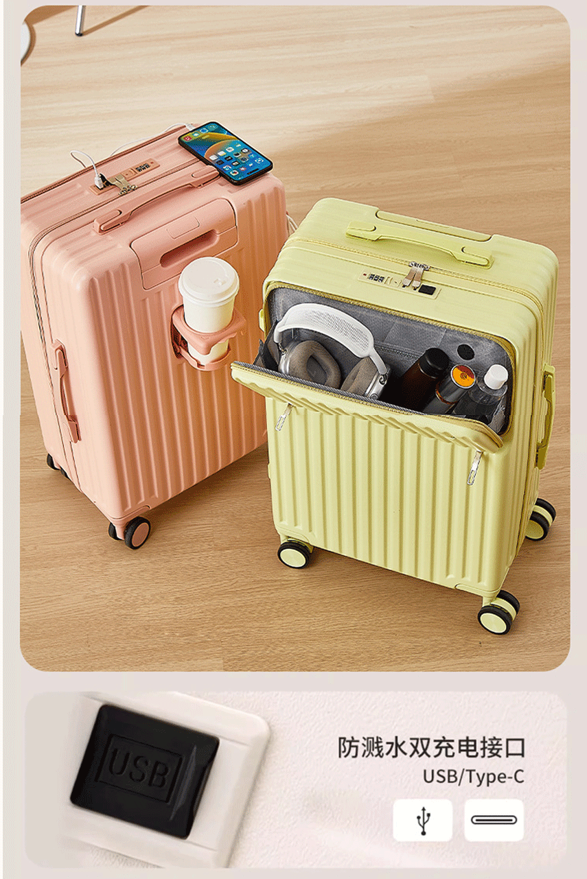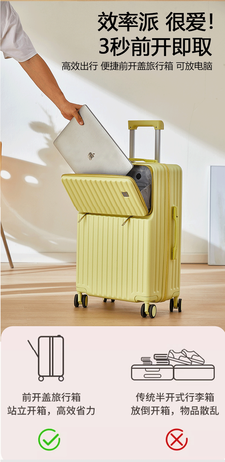 새로운 다기능 여행가방 PC 트롤리 케이스, 견고하고 내구성이 뛰어난 비밀번호 상자, 앞면 개폐식 커버, 24inch 수하물 수납 가능스토어 가기