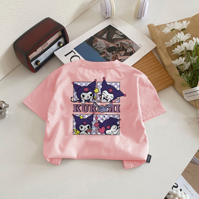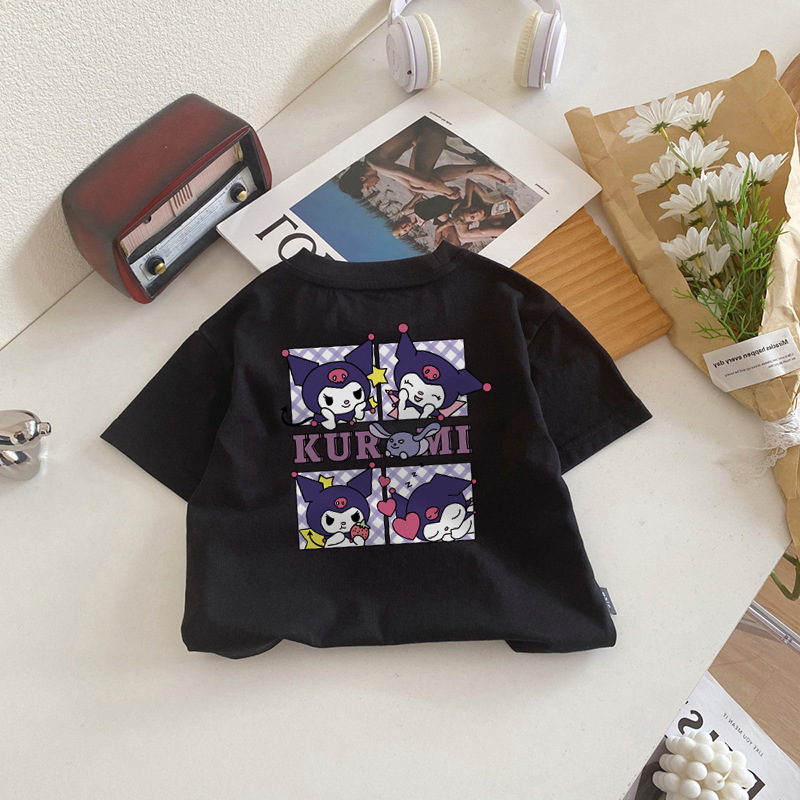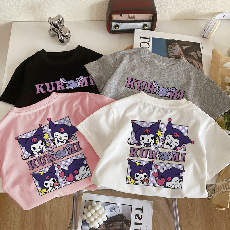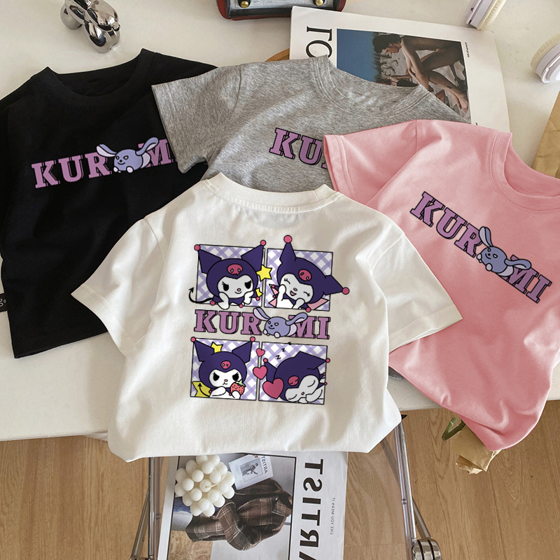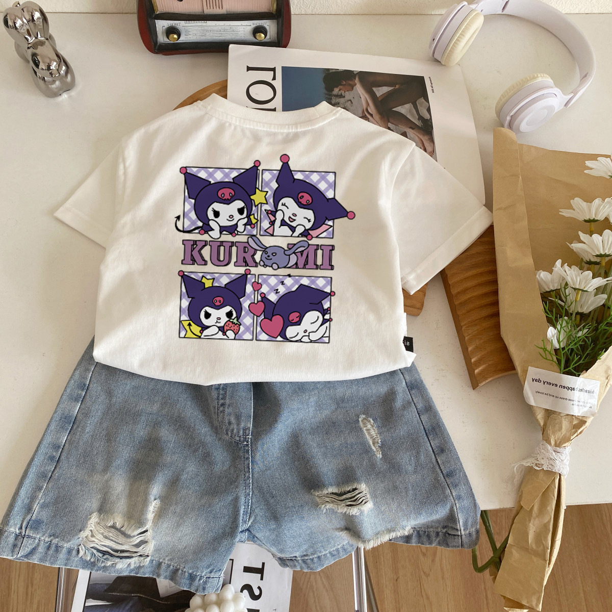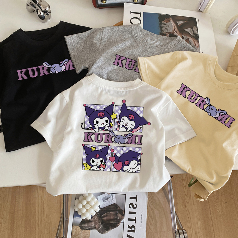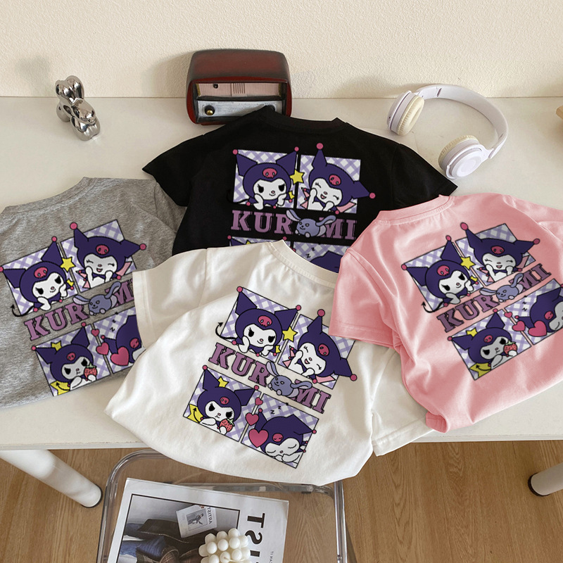순수 코튼 어린이 반팔 티셔츠 여름 2025 새로운 유행 쿠로미 만화 다목적 캐주얼 소녀상의스토어 가기