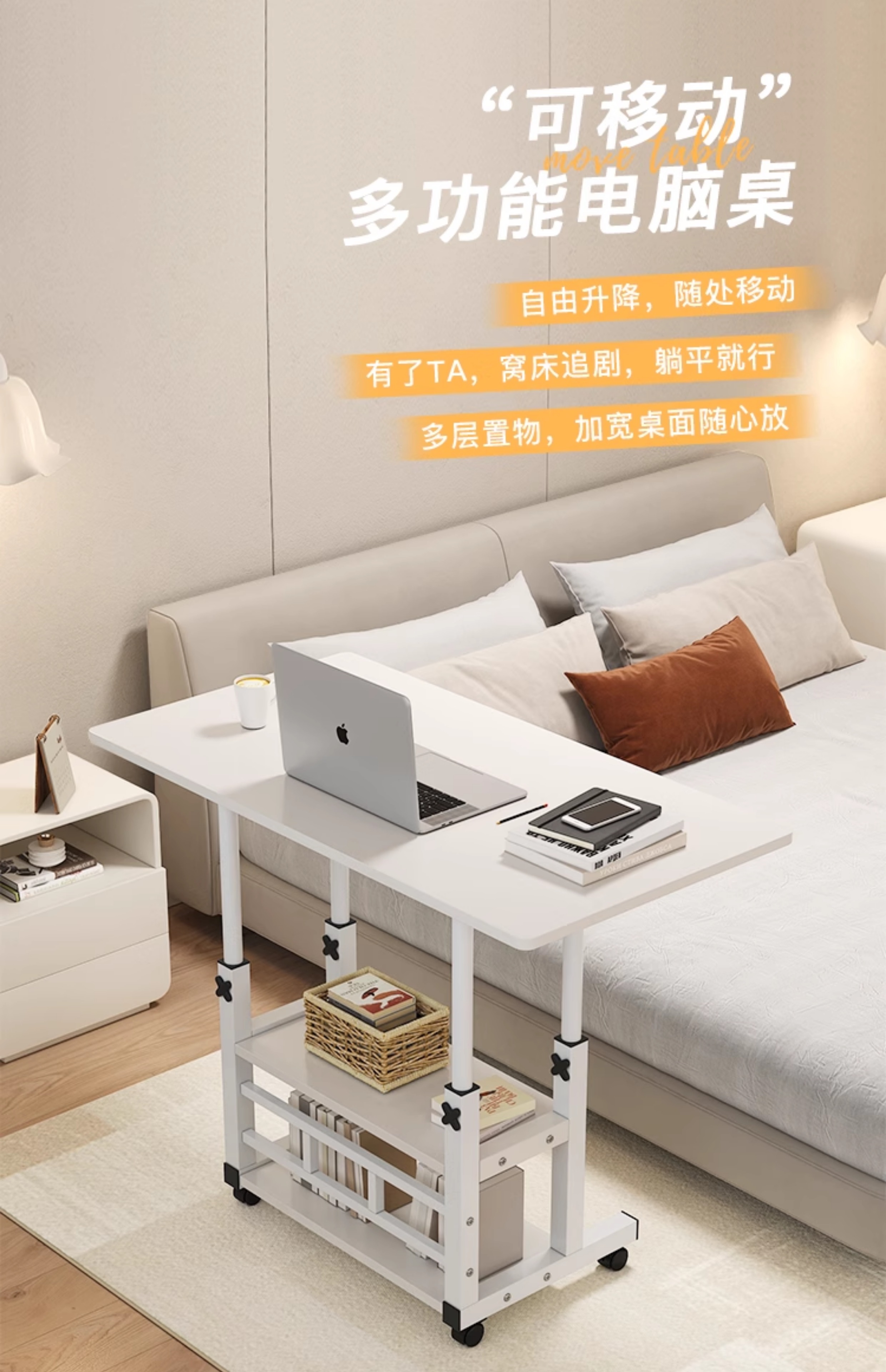 홈 침실 연구 테이블 책상 간단한 도르래 이동식 노트북 테이블이있는 도매 리프팅 침대 옆 테이블스토어 가기