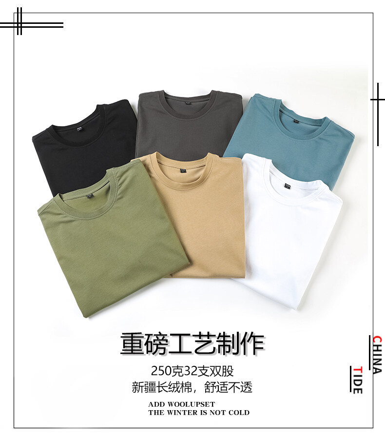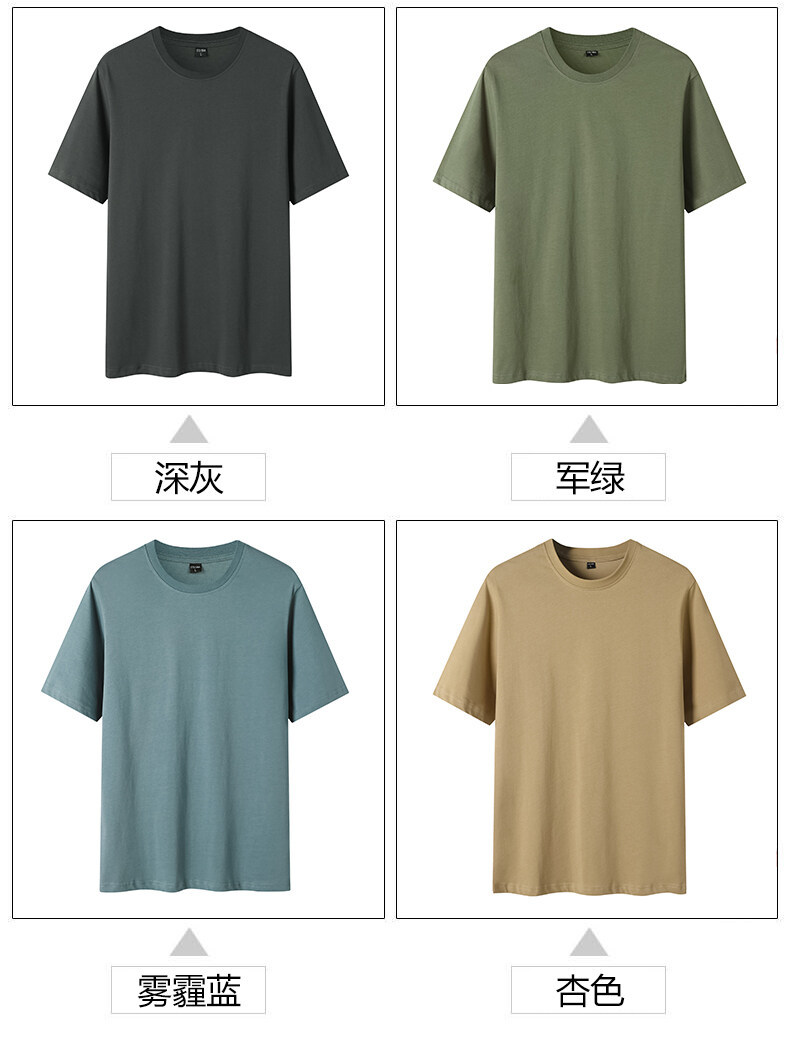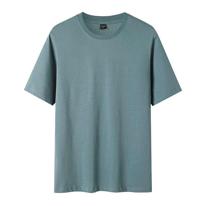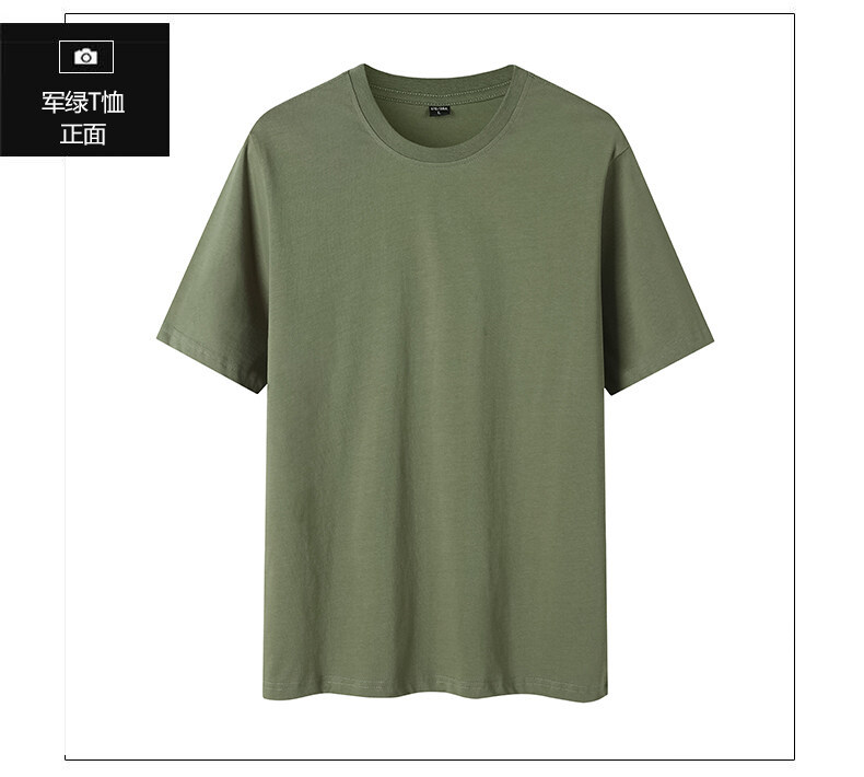 250g 32수 더블 원사 헤비급 순면 남성용 및 여성용 반팔 티셔츠 여름 라운드 넥 다용도 캐주얼 바닥 셔츠 밀리터리 그린스토어 가기