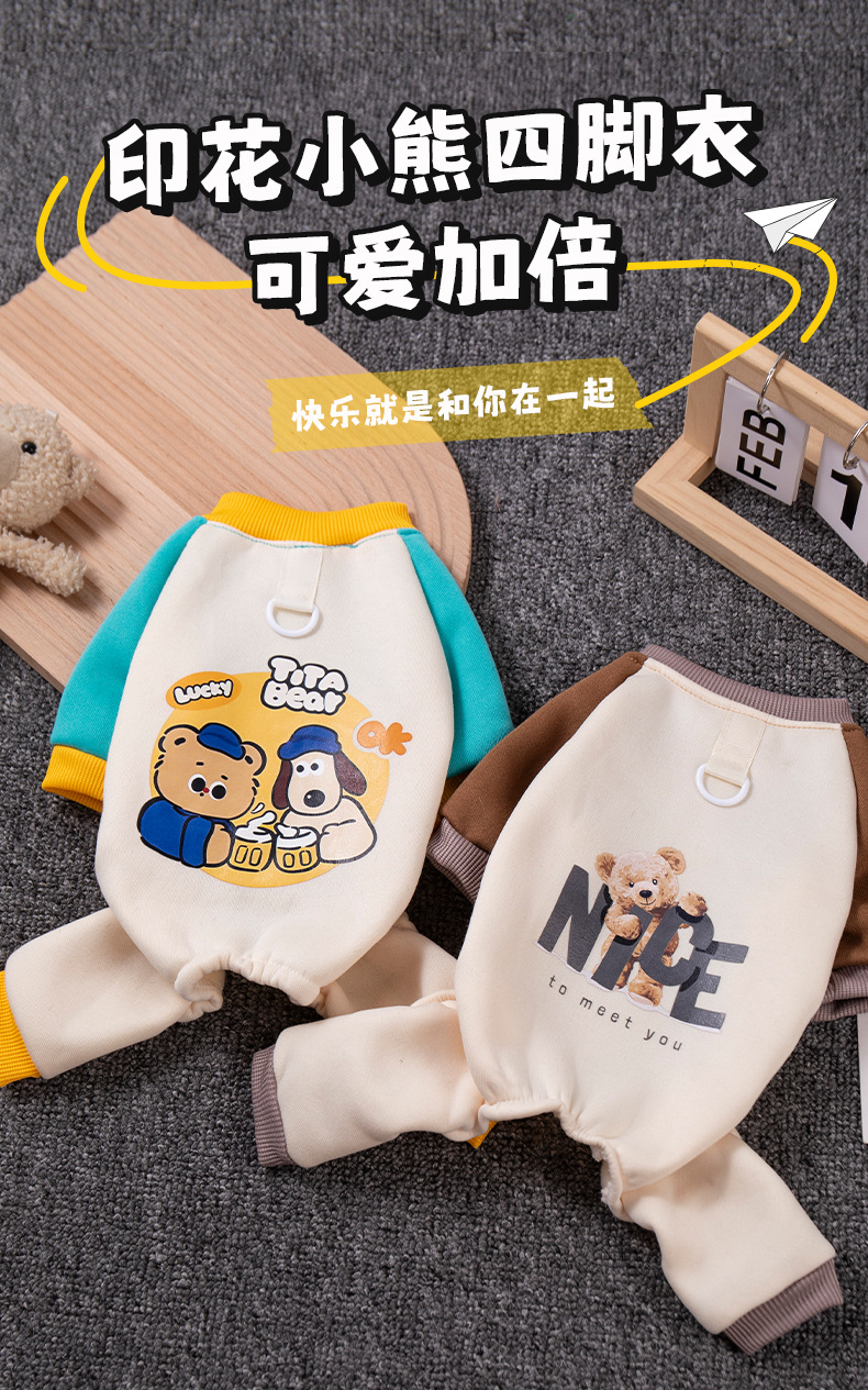 【2025】좋은 상품! 가정복 4발 견인 로프 장착 가능 애완 동물 비숑 테디 개 옷 가을 옷