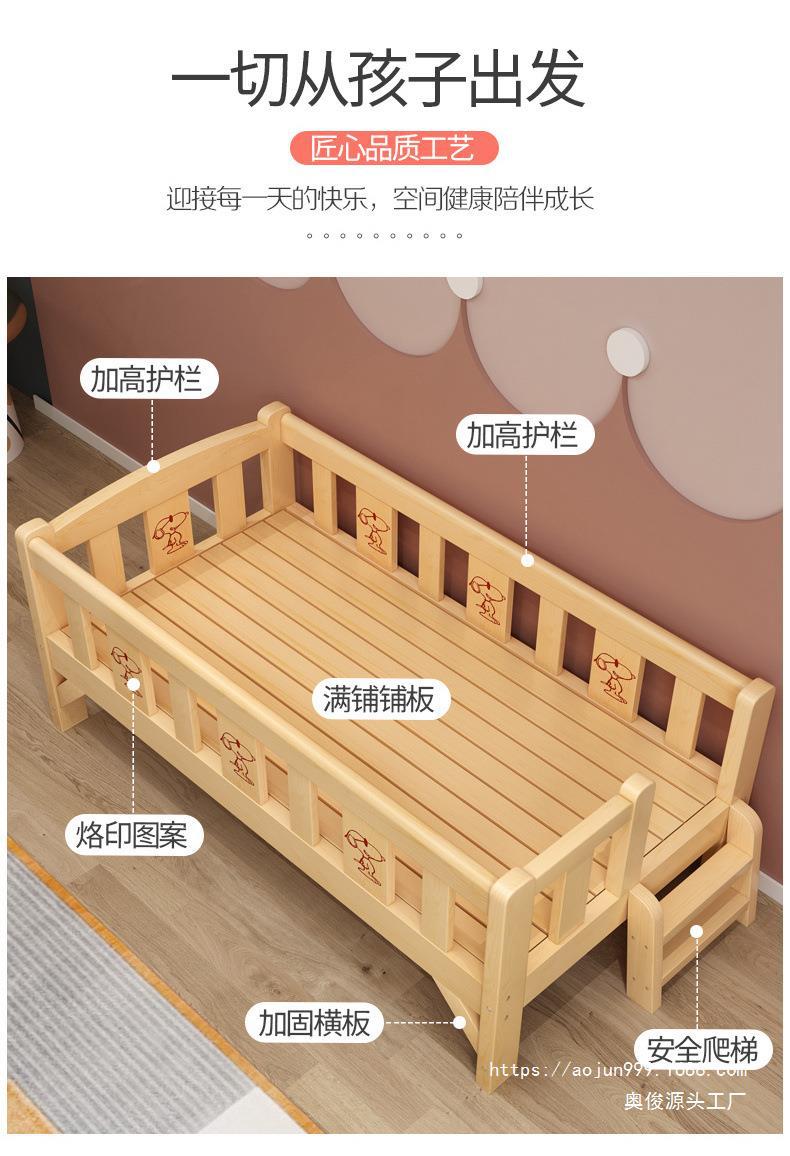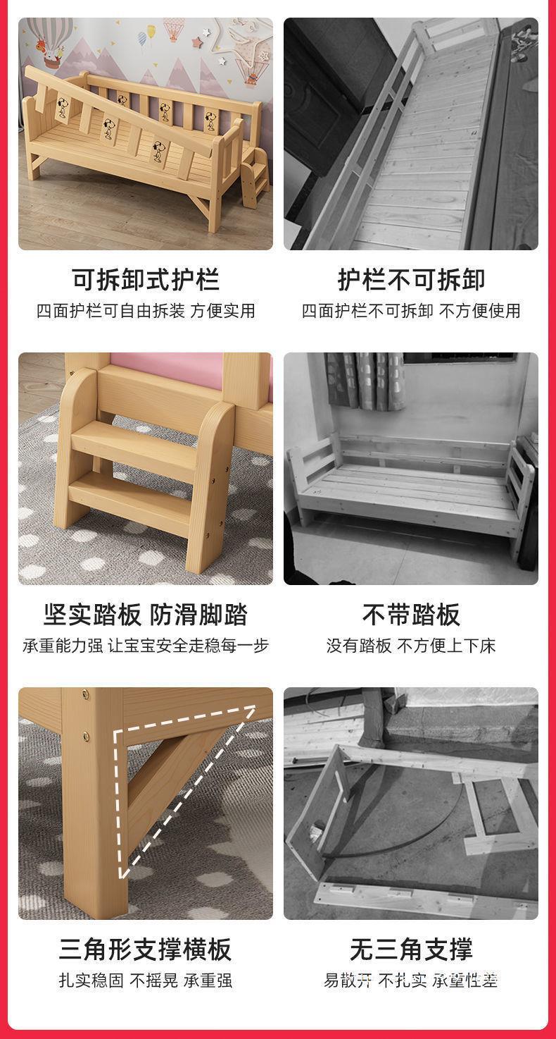 가드레일이 있는 단단한 나무 어린이 접합 침대 아기 유아용 침대 신생아 소년 소녀 접합 대형 침대 확대스토어 가기