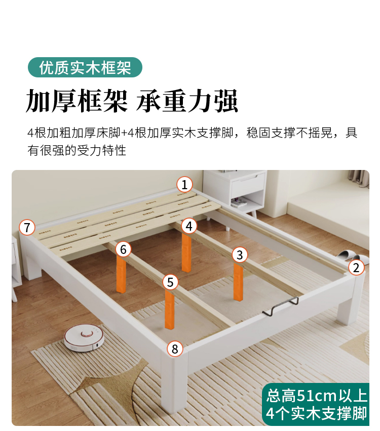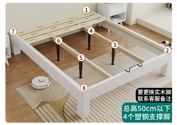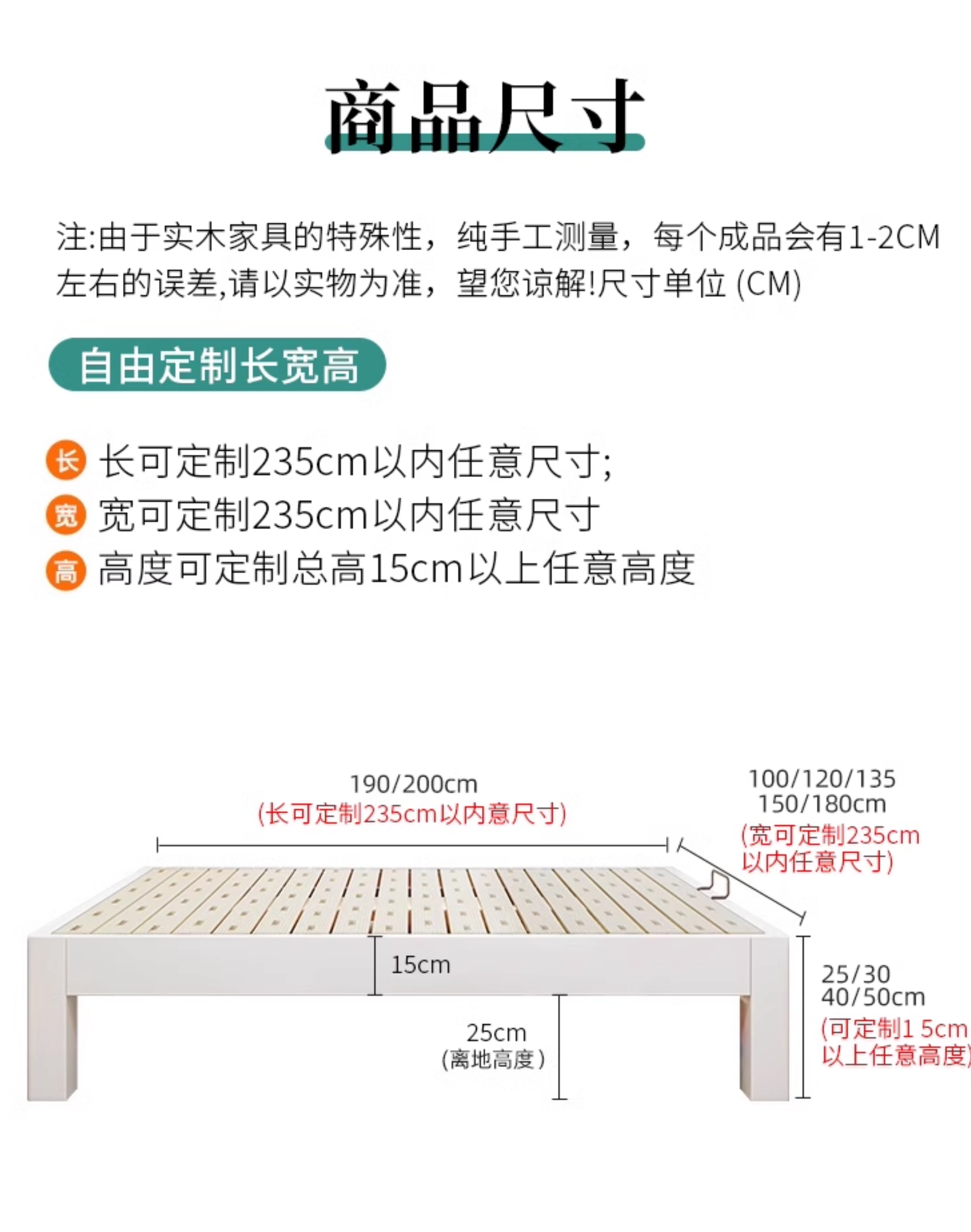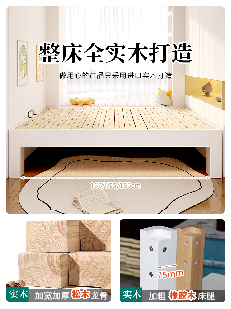 모든 원목 무소음 프레임 침대, 침대 프레임 없음, 맞춤형 높이의 어린이 다다미스토어 가기