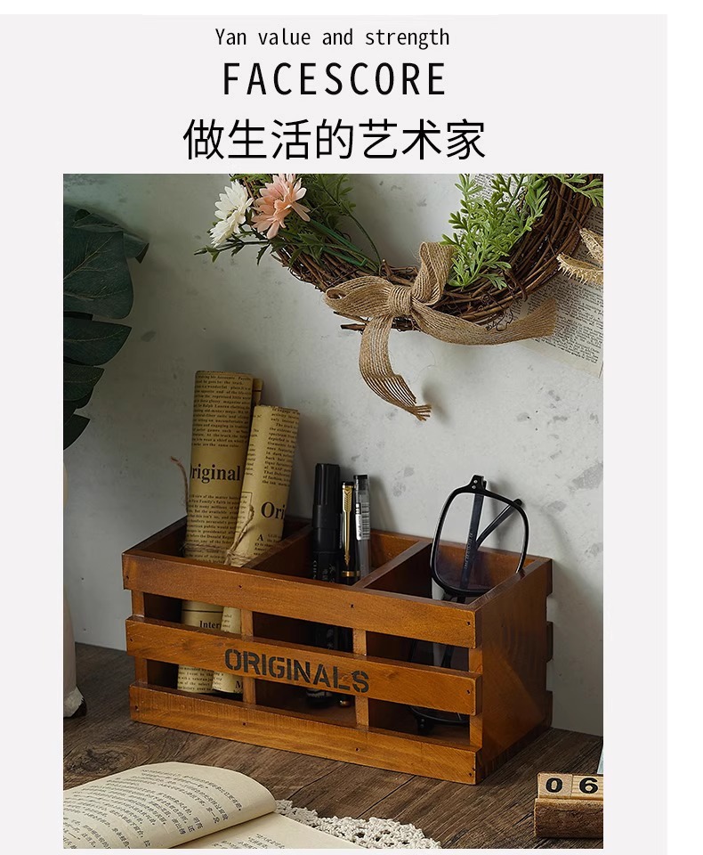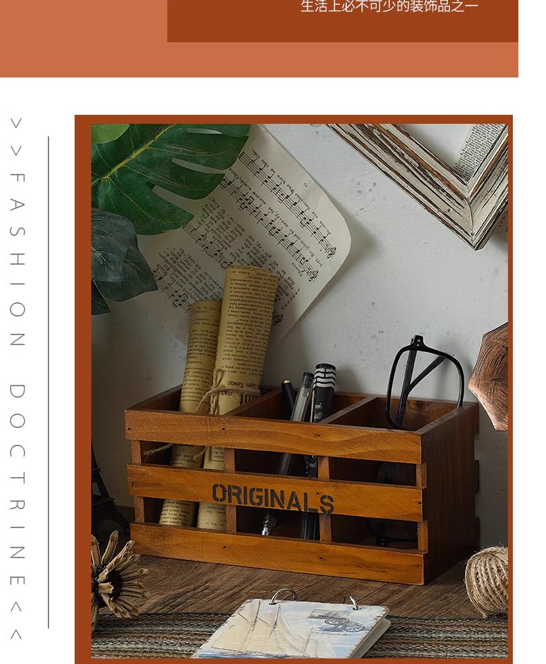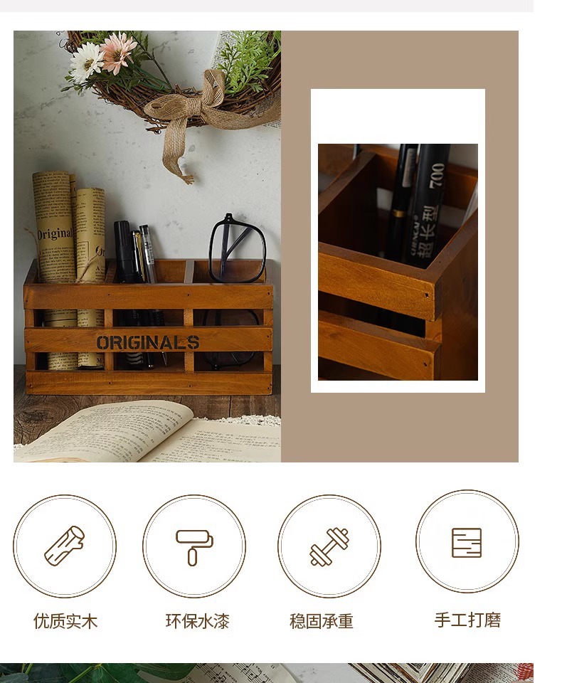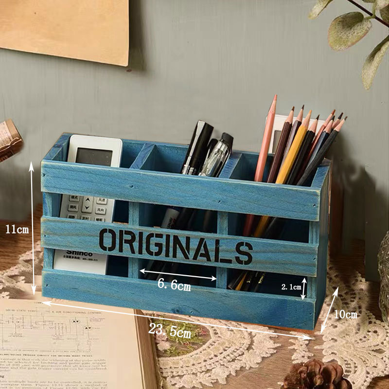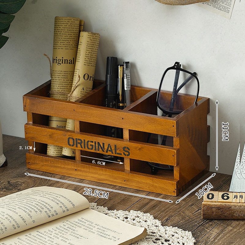 사무실 펜 홀더 보관 나무 복고풍 책상 학교 용품 편지지 상자 데스크탑 메이크업 브러쉬 버킷 크리 에이 티브 장식품스토어 가기