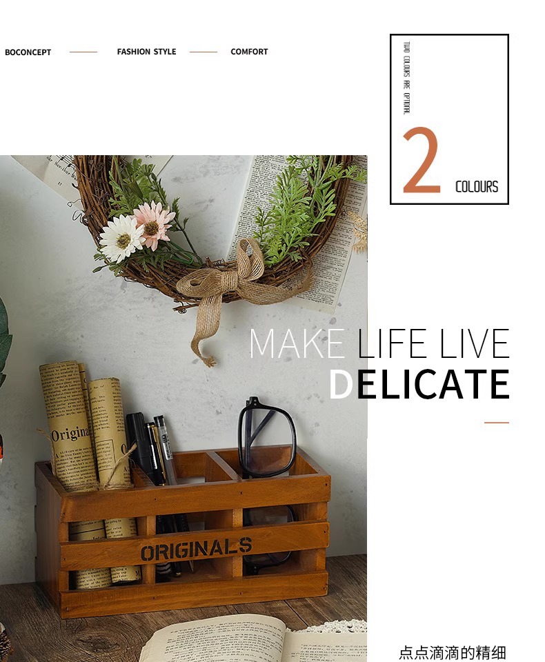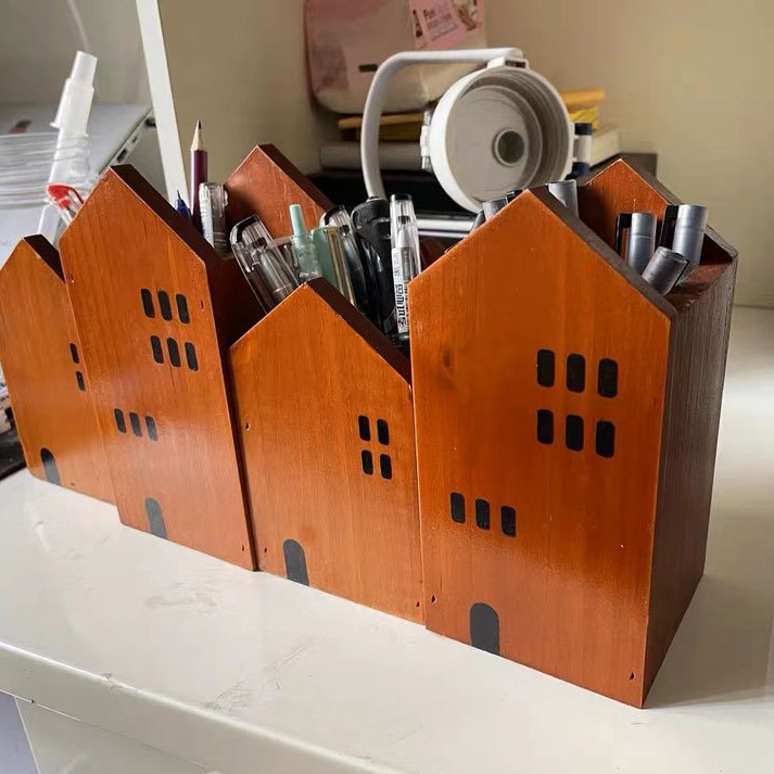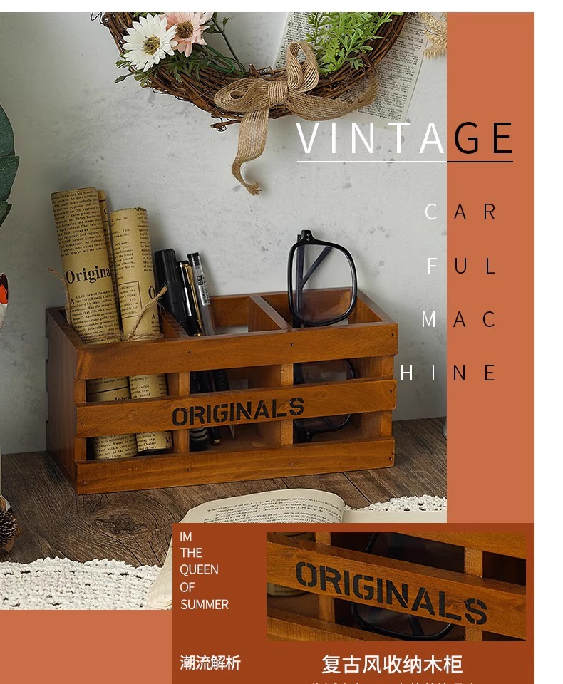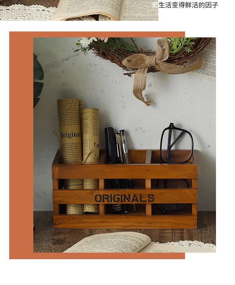 사무실 펜 홀더 보관 나무 복고풍 책상 학교 용품 편지지 상자 데스크탑 메이크업 브러쉬 버킷 크리 에이 티브 장식품스토어 가기