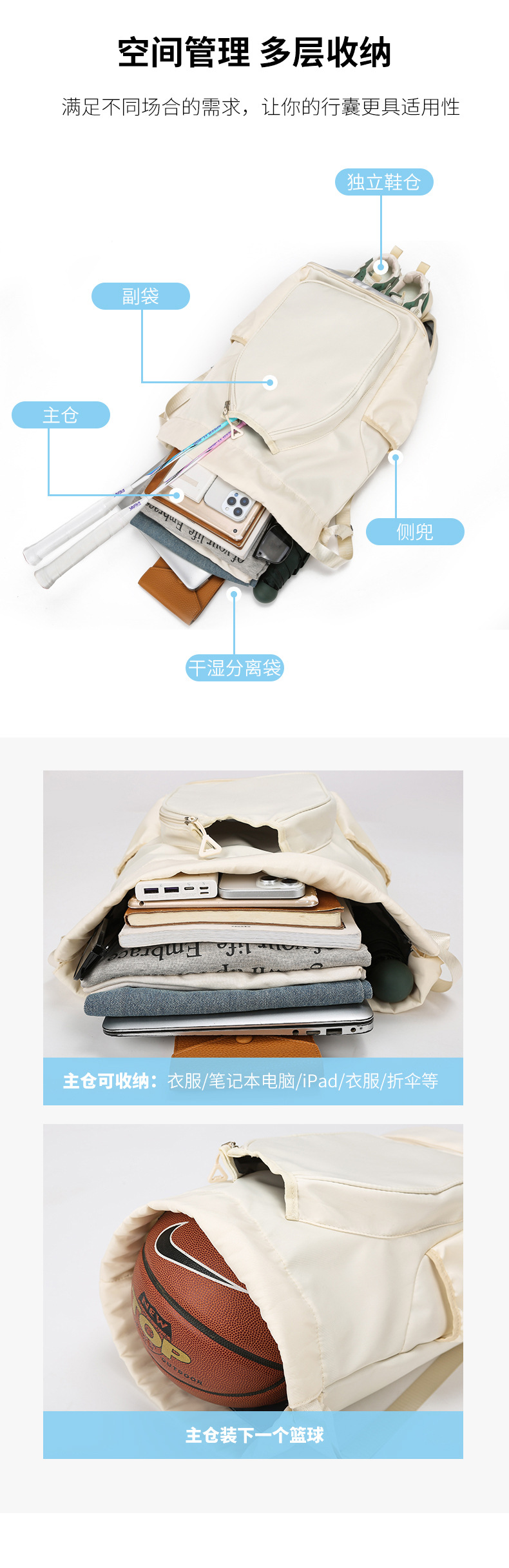 25 새로운 대용량 배낭 배낭 신입생 경량 간단한 배드민턴 라켓 가방 피트니스 가방 독립 신발 찬장