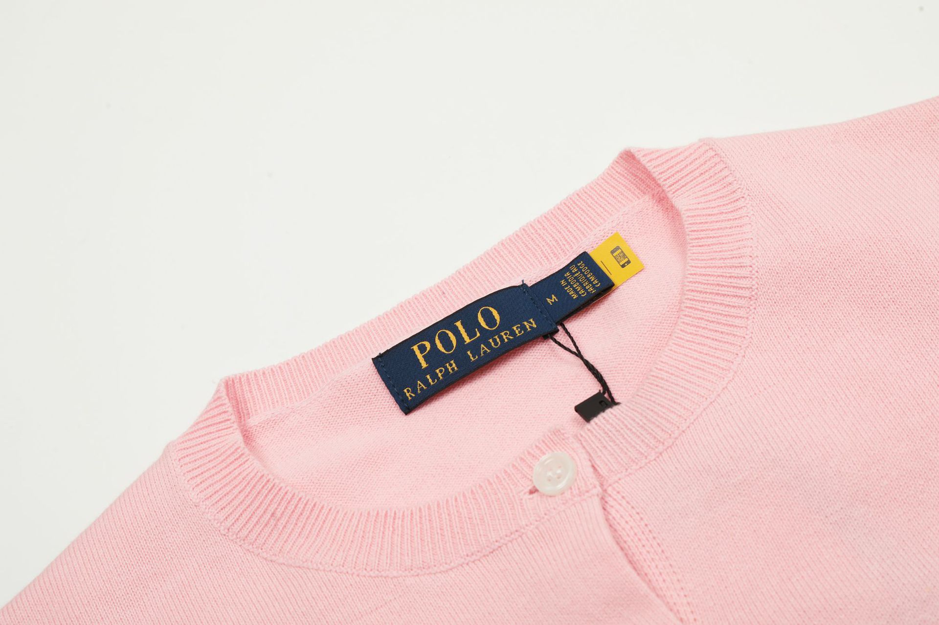 크로스보더 러프 하이 버전 RL 솔리드 컬러 라운드 넥 기본 포니 자수 로고 니트 가디건 긴팔 라운드 넥 봄, 가을