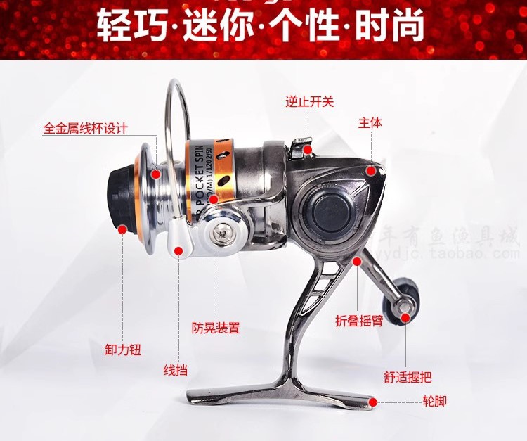 미니 소형 낚시 릴, 올메탈 마이크로 스피닝 릴, 루야 팜보 500형 마이크로 투척 소형 낚시 릴