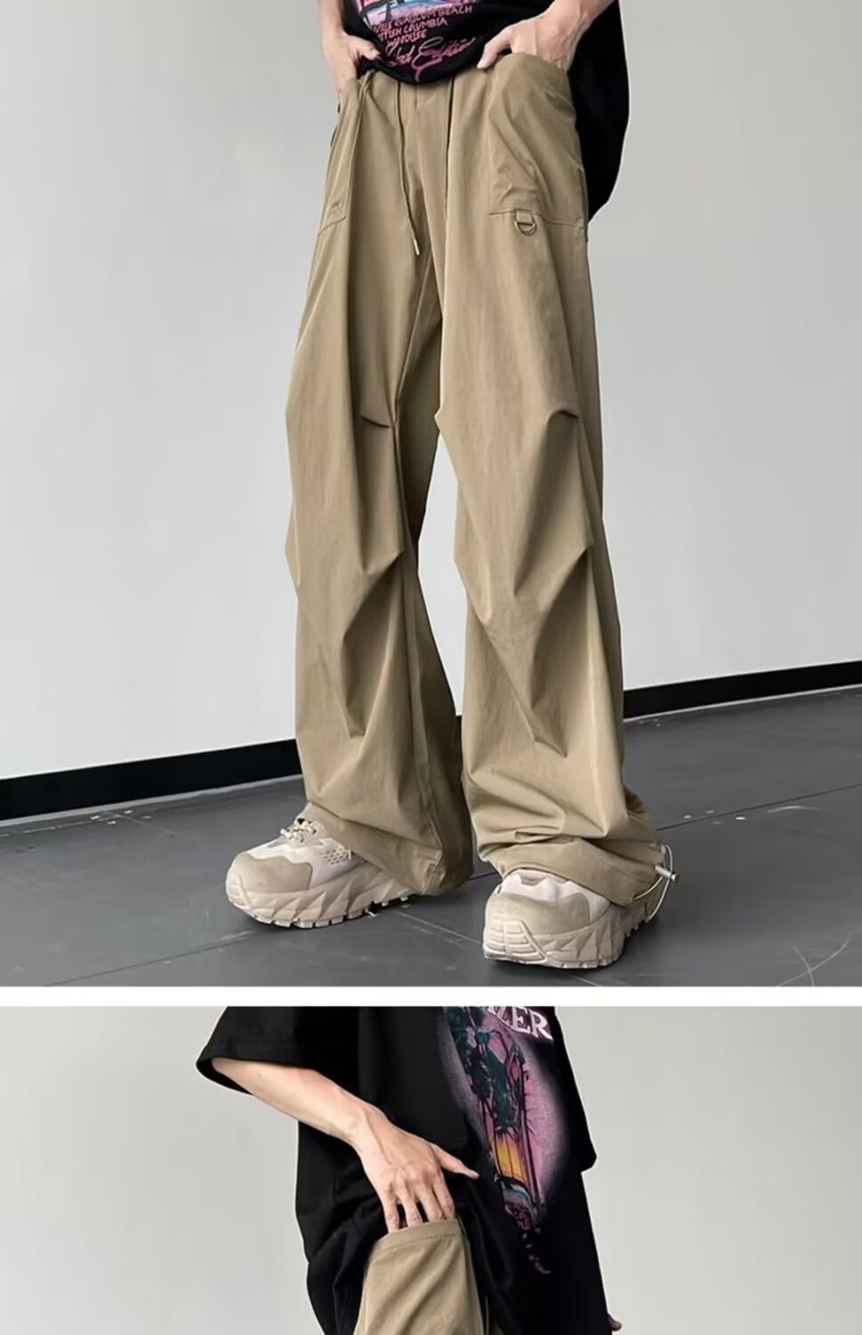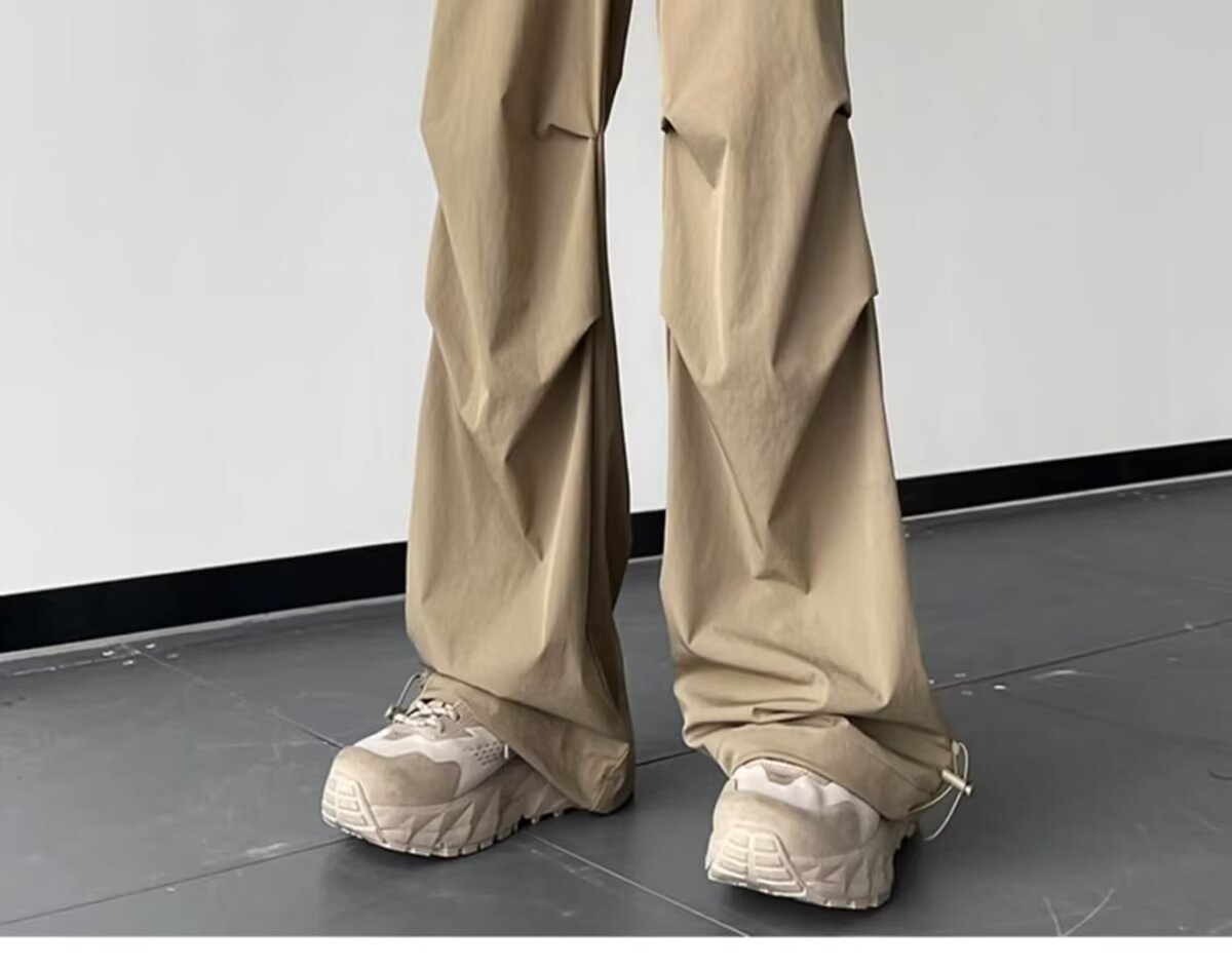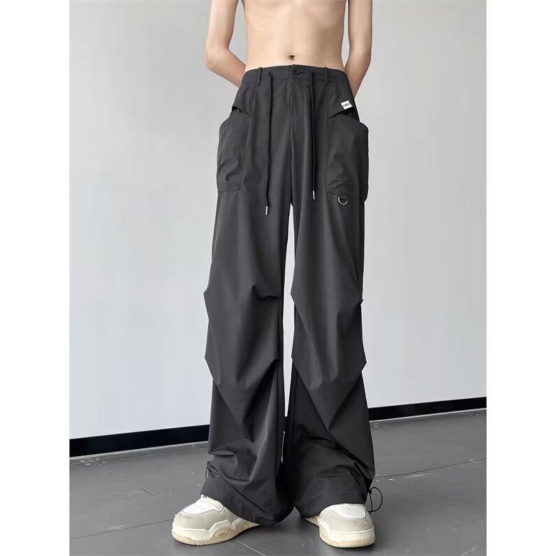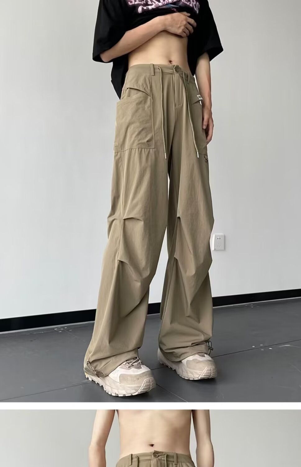 남성과 여성을 위한 아이스 실크 속건성 낙하산 바지 여름 얇은 미국식 자외선 차단제 와이드 레그 바닥 길이 등산 작업복 충전 바지