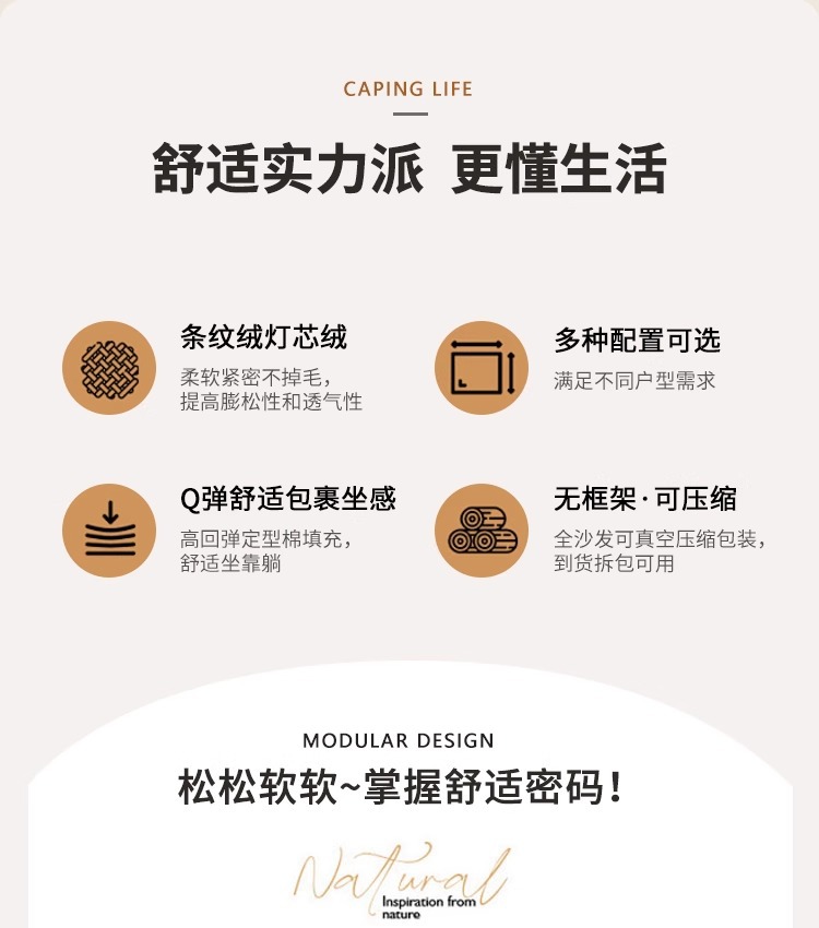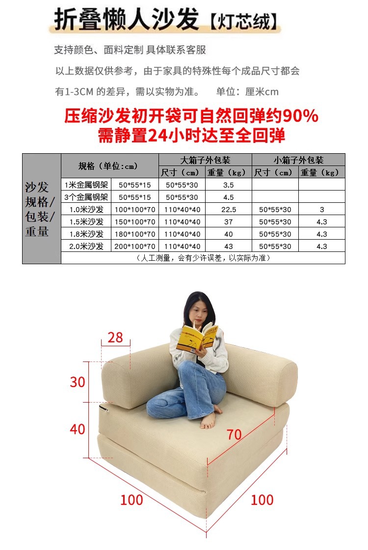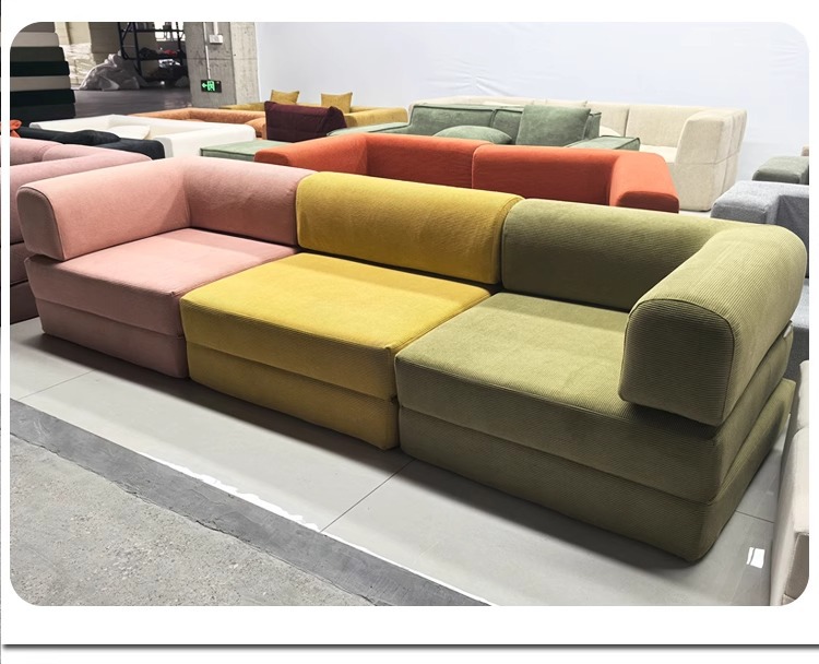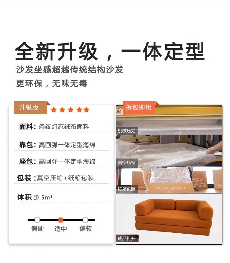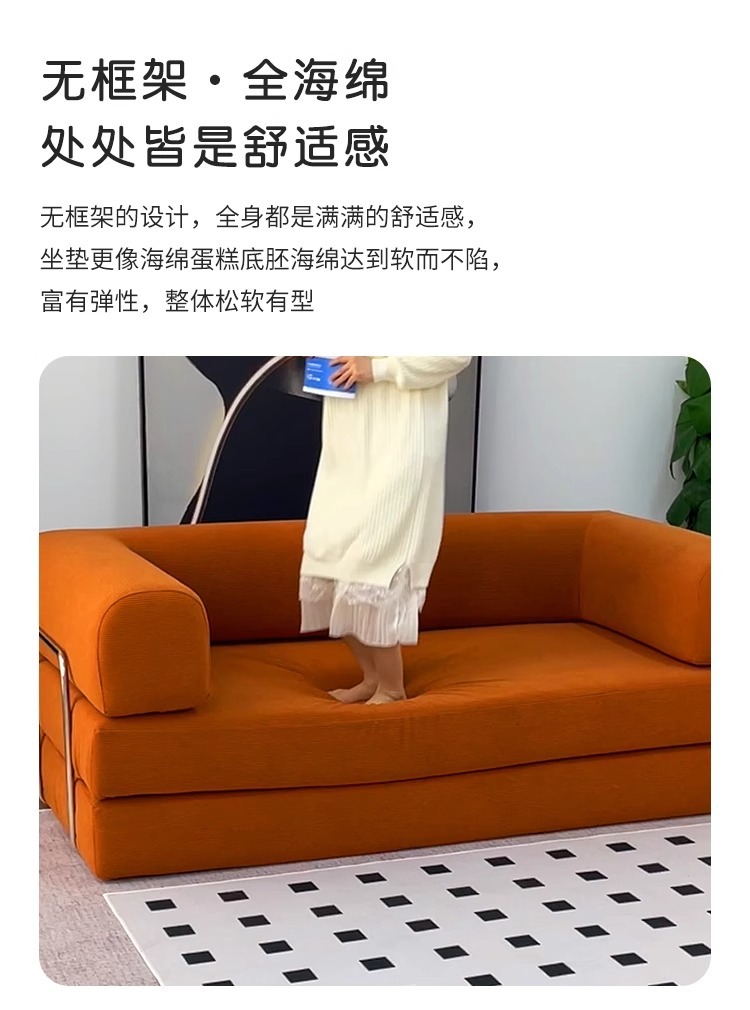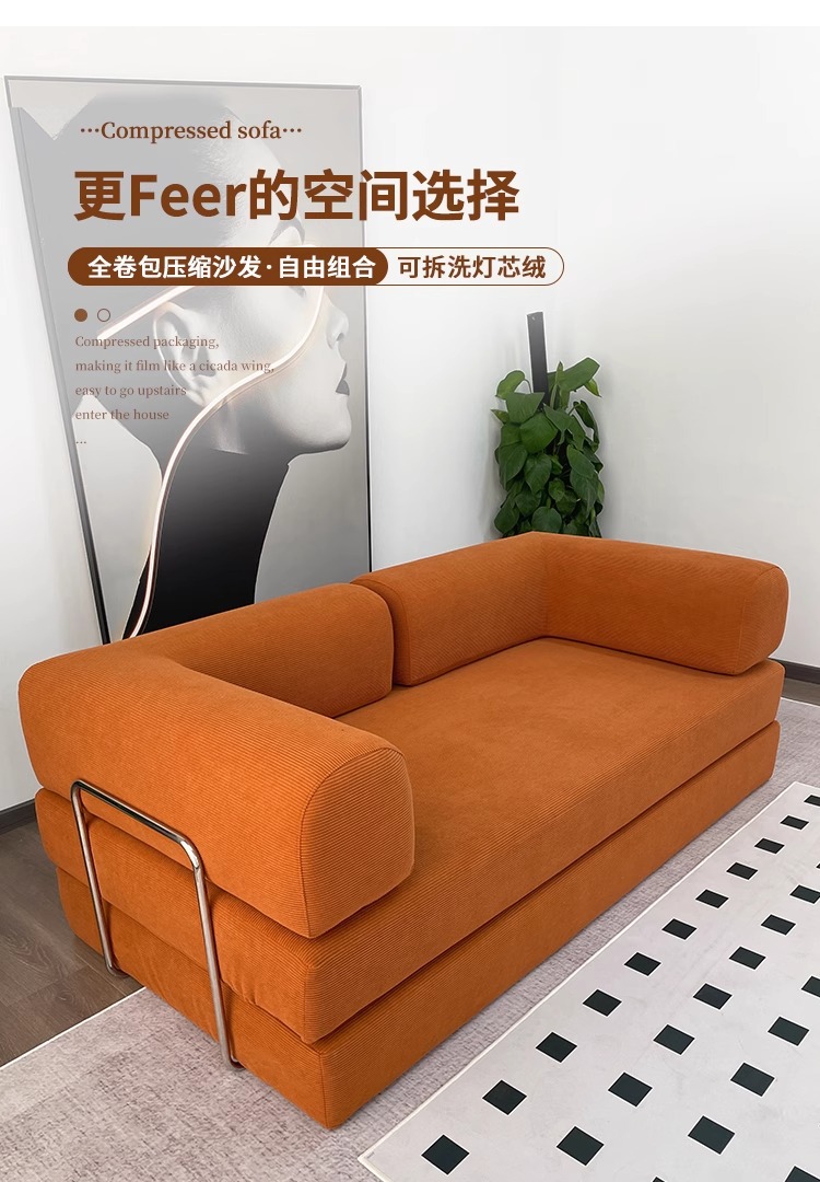 대외 무역 압축 패브릭 소파 베드 복고풍 스타일 코듀로이 완전 분해 및 세탁 가능 현대적인 미니멀리스트 거실 작은 아파트 더블 좌석