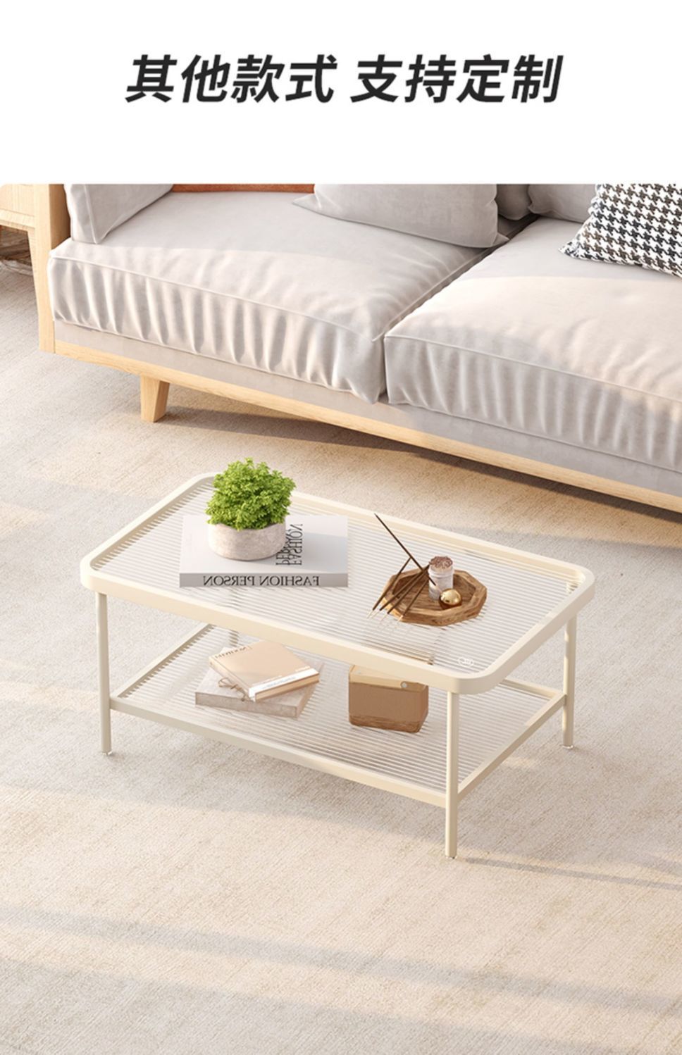 간단한 와비사비 스타일 거실 홈 작은 아파트 커피 테이블 유리 등나무 미니멀리스트 사각형 더블 레이어 대외 무역 도매스토어 가기
