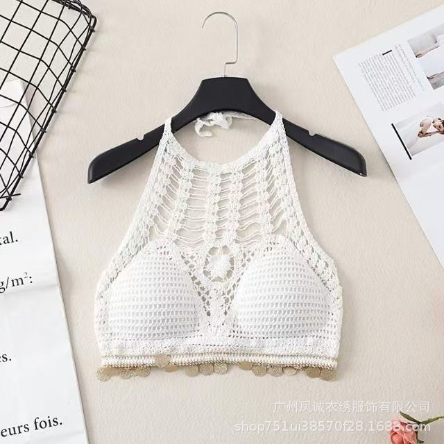 해변 휴가 섹시한 작은 캐미솔 자수 암호화 된 중공 아름다운 등이없는 튜브 탑 가슴 패드 비키니스토어 가기
