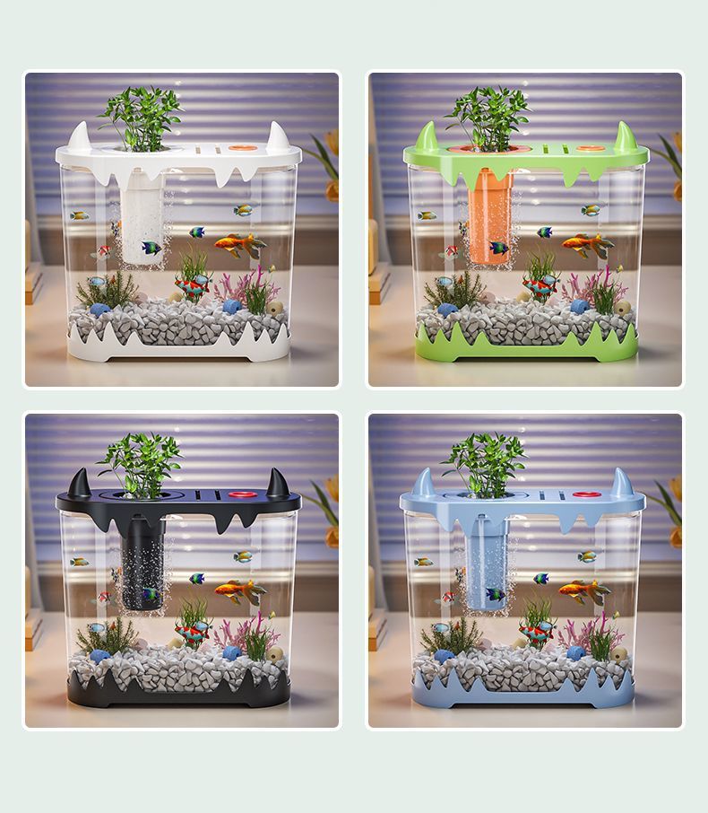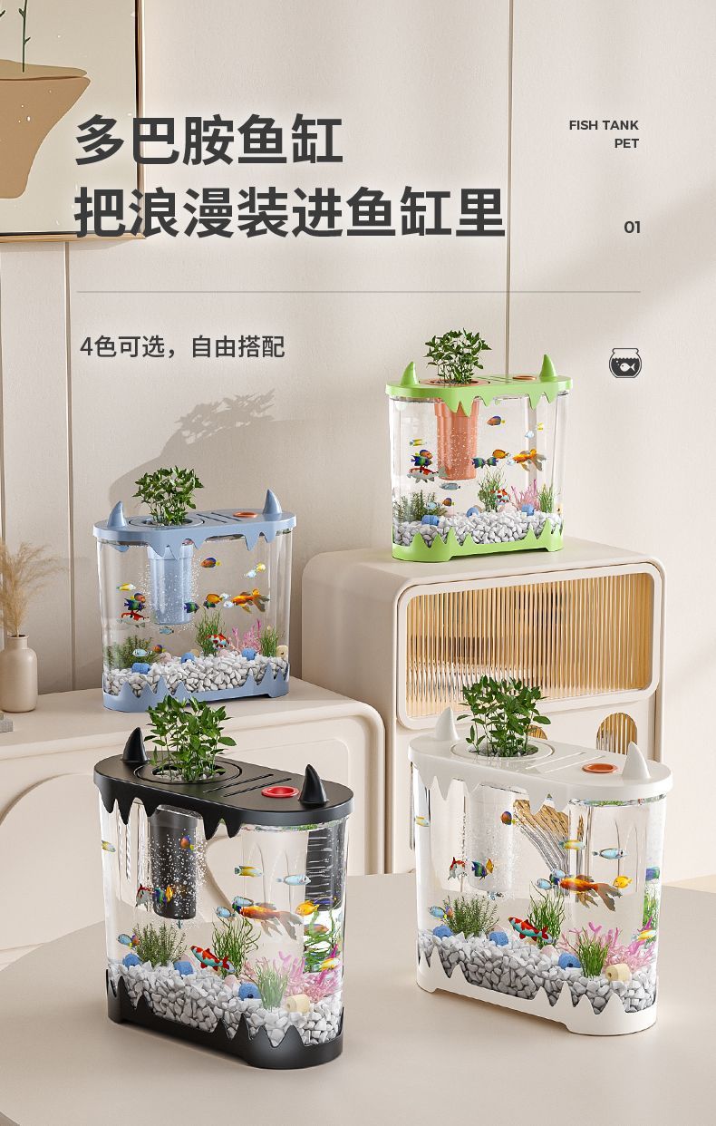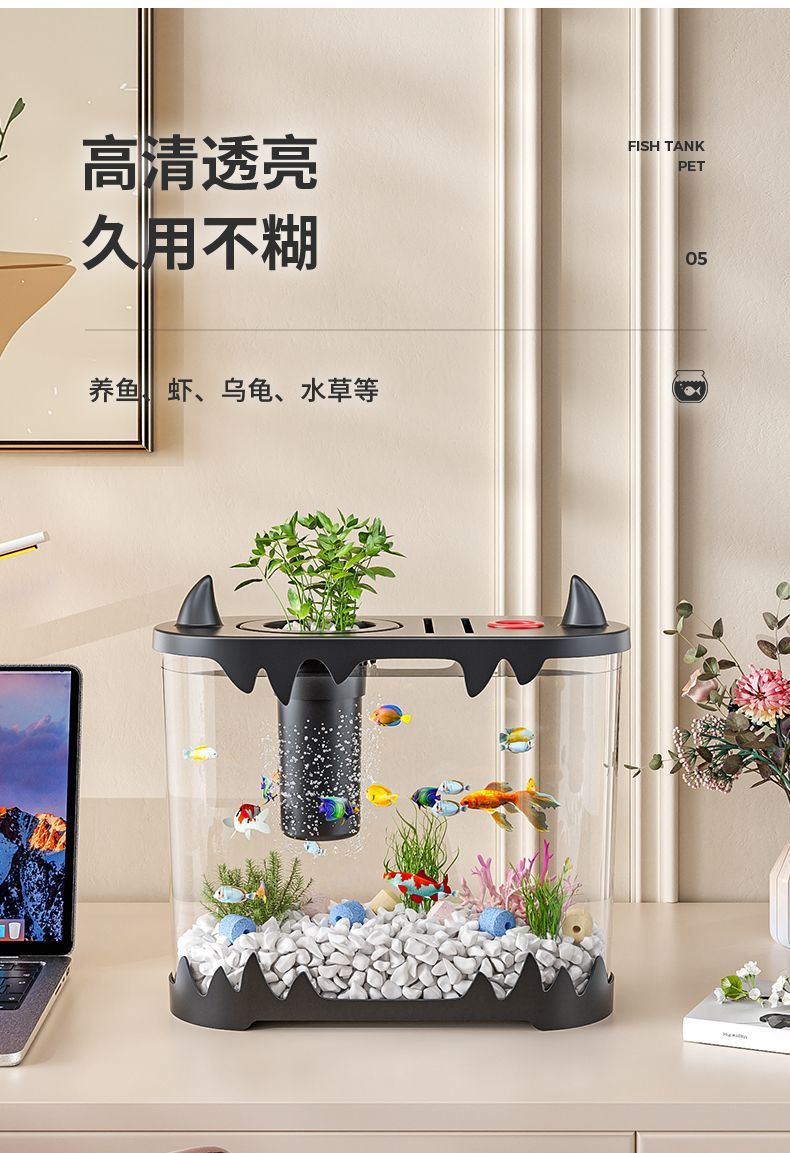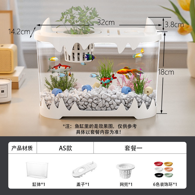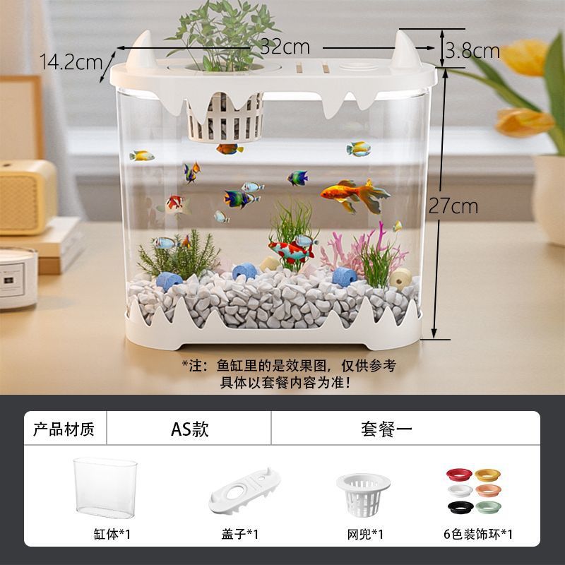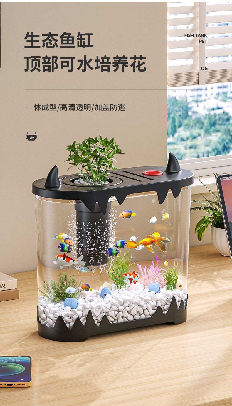 데스크탑 수조 소형 가정용 고화질 투명 플라스틱 생태 수조 만화 낙하 방지 관찰 타원형 생태 수조