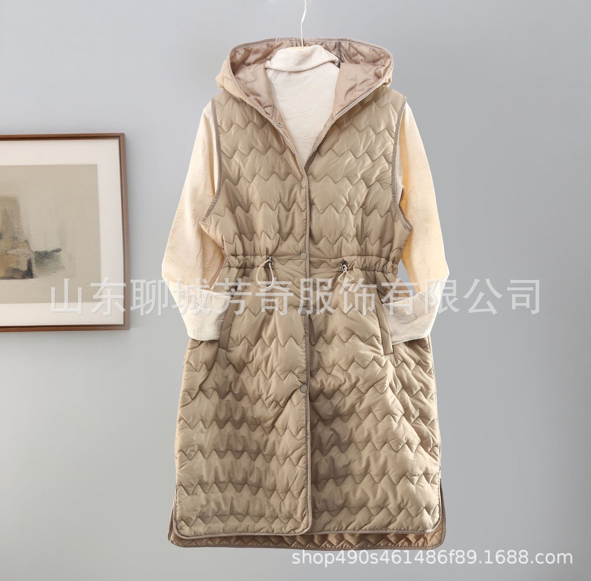 대외 무역 솔리드 컬러 라이너 여성 허리 중간 길이 경량 후드 이너 조끼 조끼 겨울 겉옷 패션