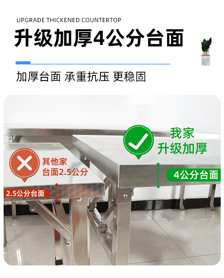 두꺼운 스테인레스 스틸 접이식 테이블 가정용 긴 테이블 상업용 직사각형 야외 바베큐 스톨 휴대용 식탁