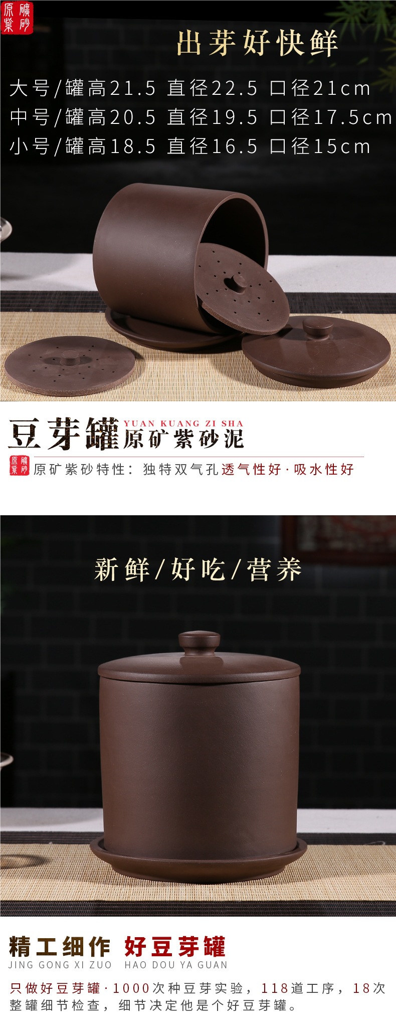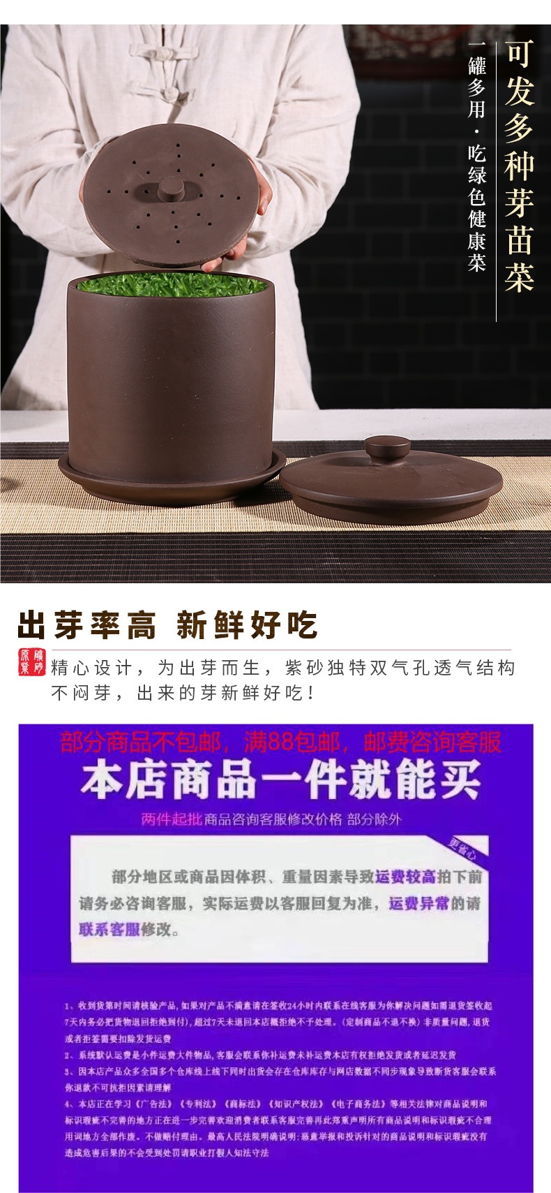 Jishibang () Yixing 보라색 모래 콩나물 항아리 대형 콩나물 기계 콩나물 모종 수경 콩나물 모종스토어 가기