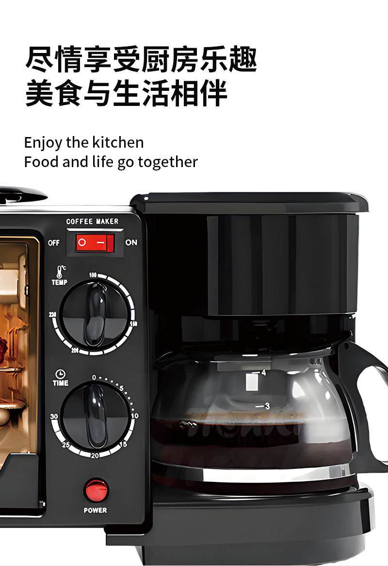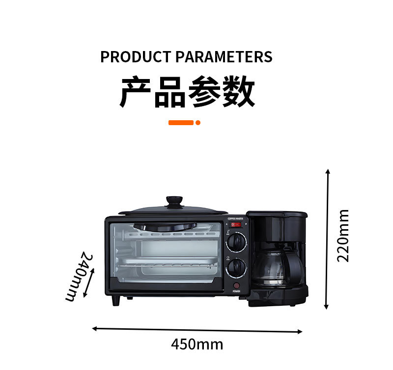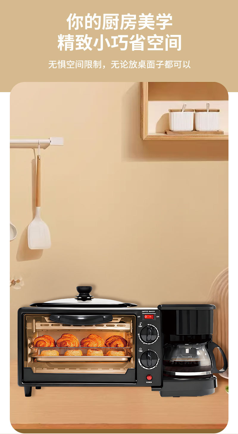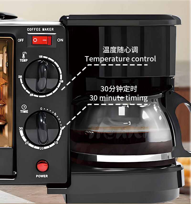 3-in-1 아침 식사 기계 다기능 토스터 미니 빵 기계 전기 오븐 커피 메이커