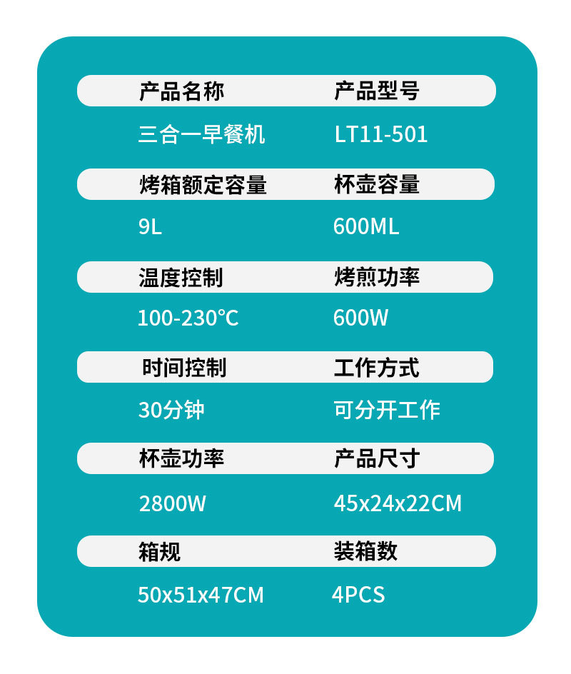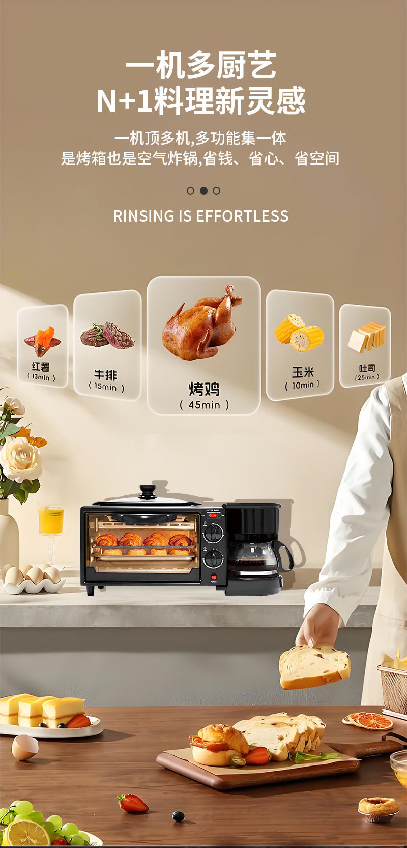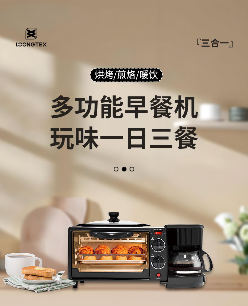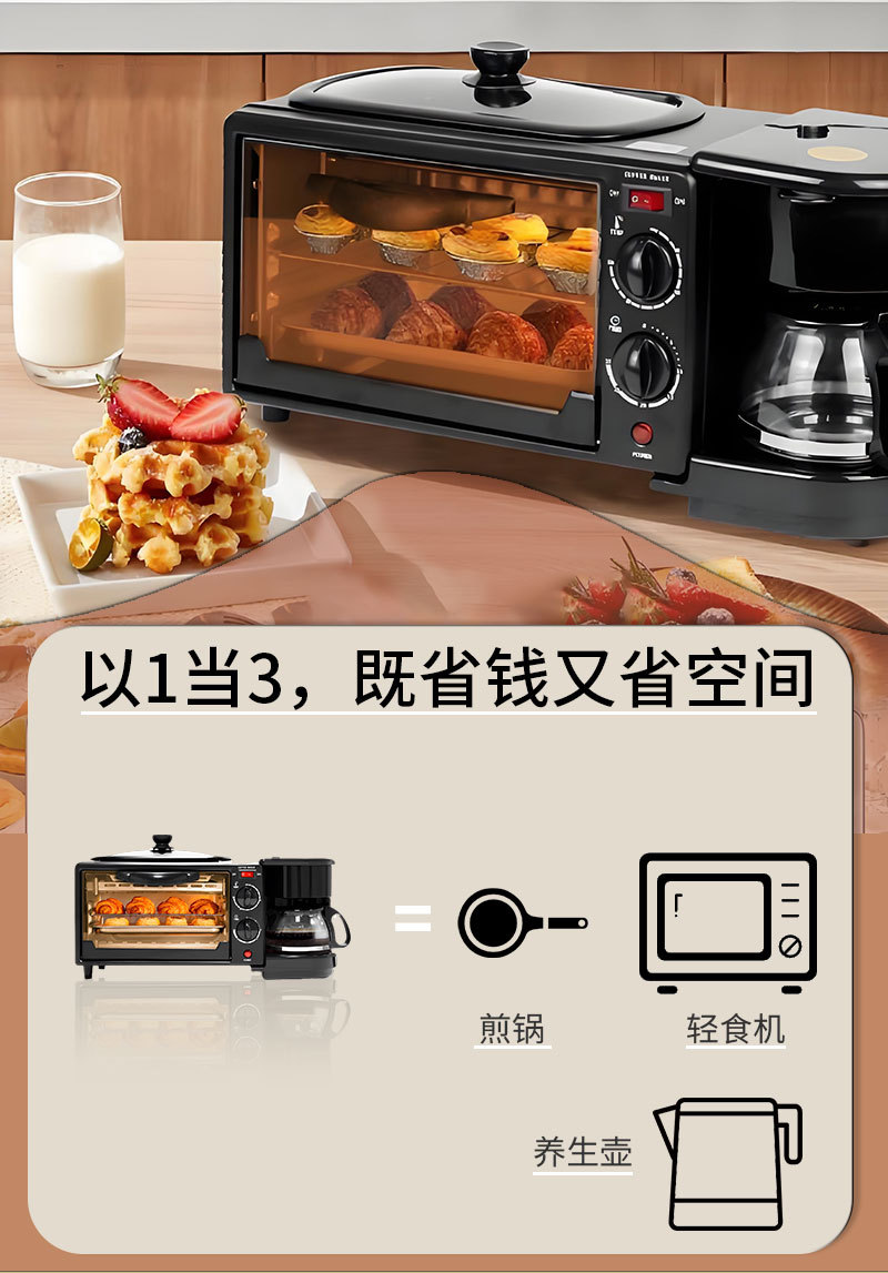 3-in-1 아침 식사 기계 다기능 토스터 미니 빵 기계 전기 오븐 커피 메이커