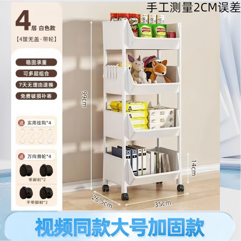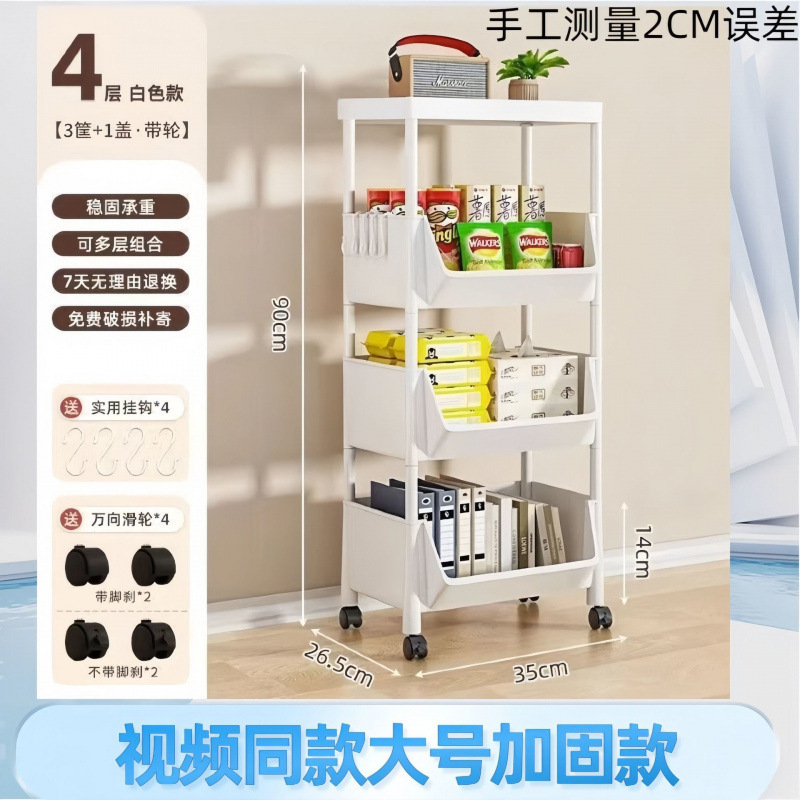 • 대외 무역 대형 [테이블 밑 수납] 4단 커버 없음 + 브레이크 휠 + 후크 ⚑ ✦