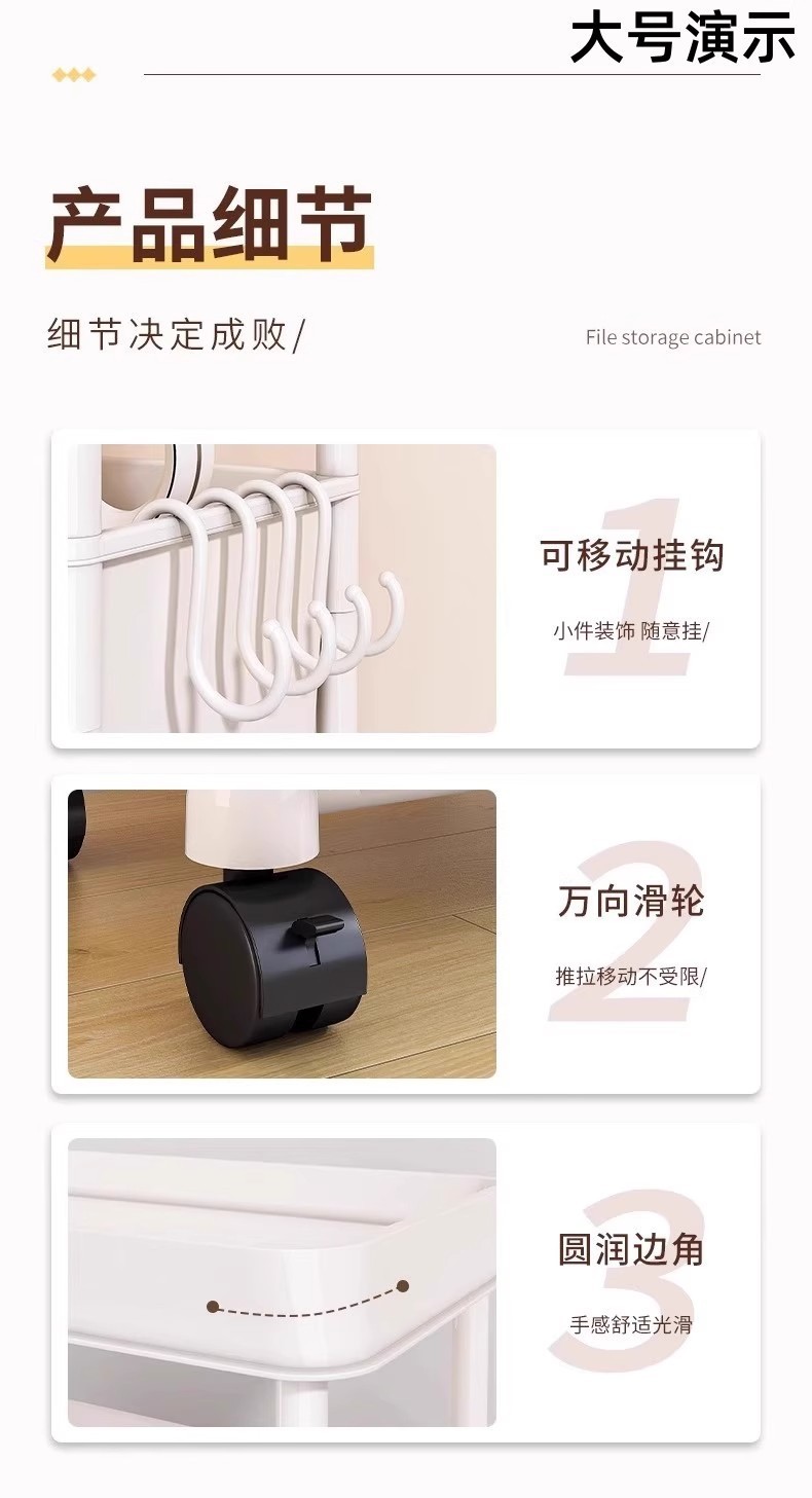 • 대외 무역 대형 [테이블 밑 수납] 5단 커버 없음 + 브레이크 휠 + 후크⚑✦