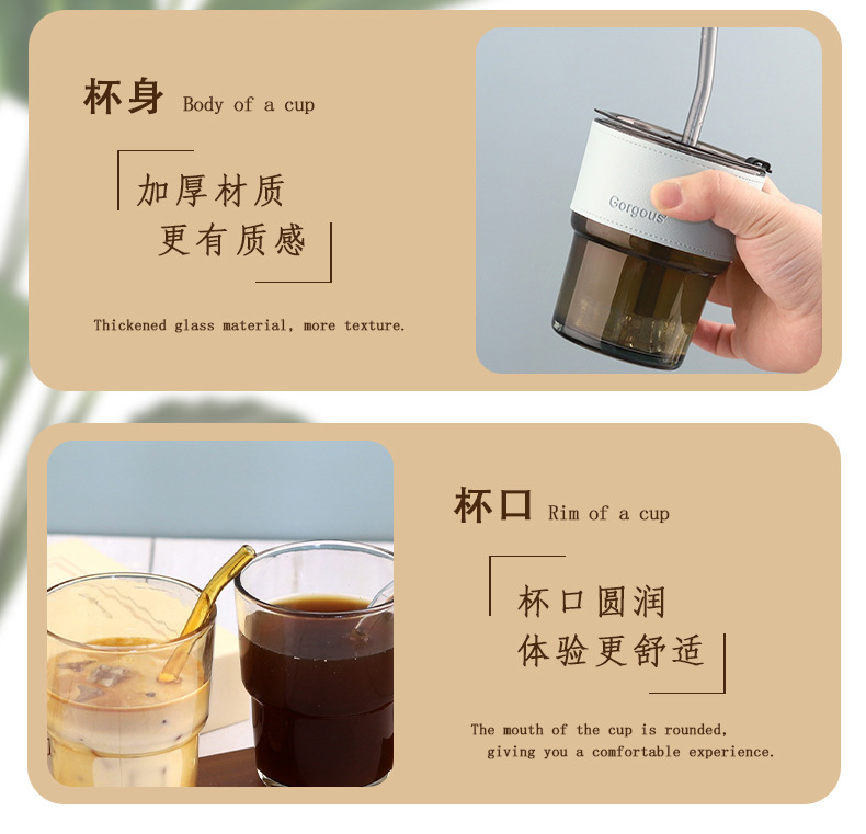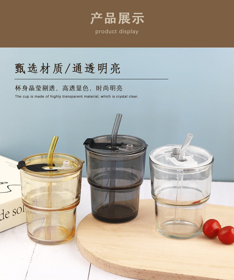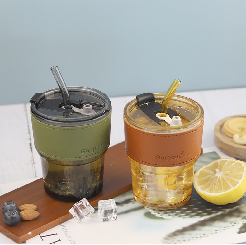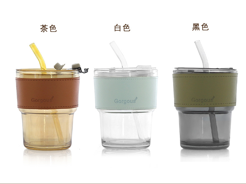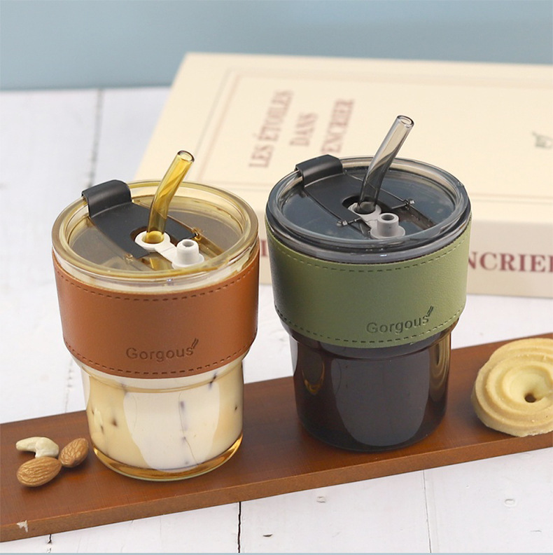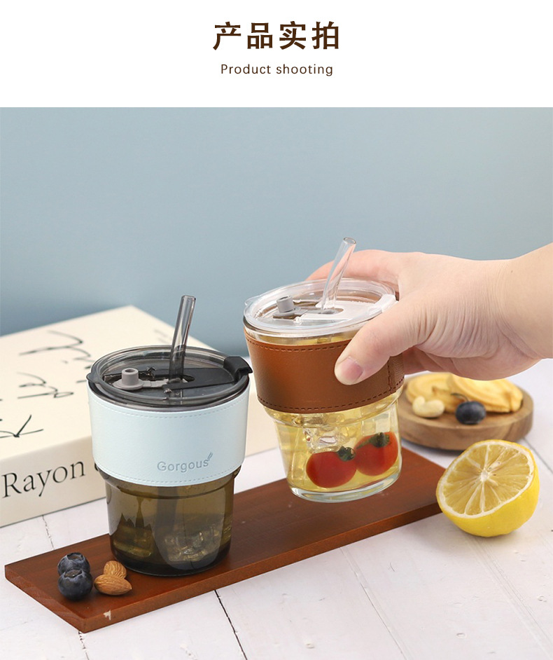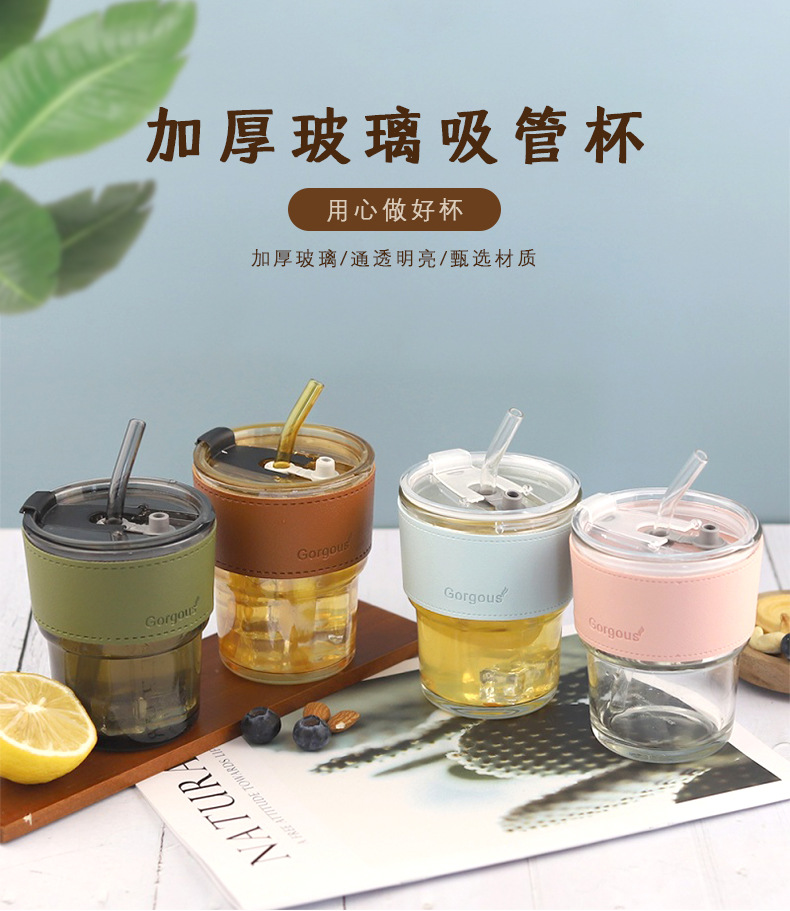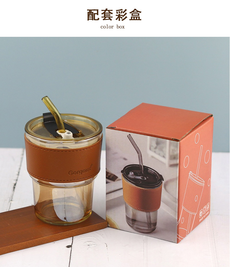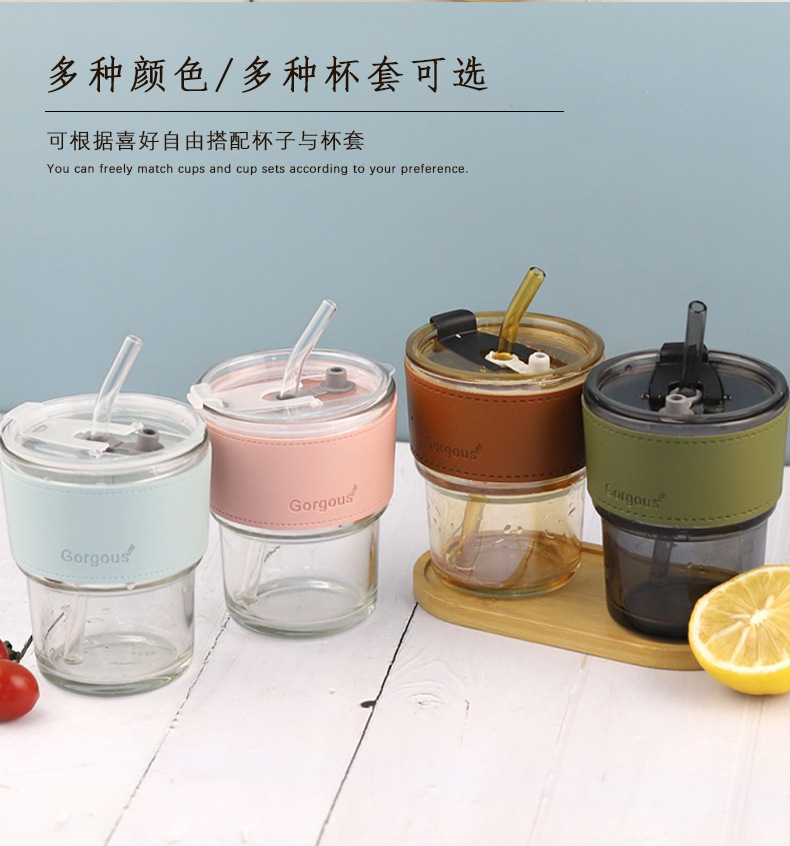 뚜껑이 있는 창의적이고 고급스러운 휴대용 대나무 밀짚 컵, 밀짚 유리 물컵, 인터넷 연예인 커피 선물 컵스토어 가기