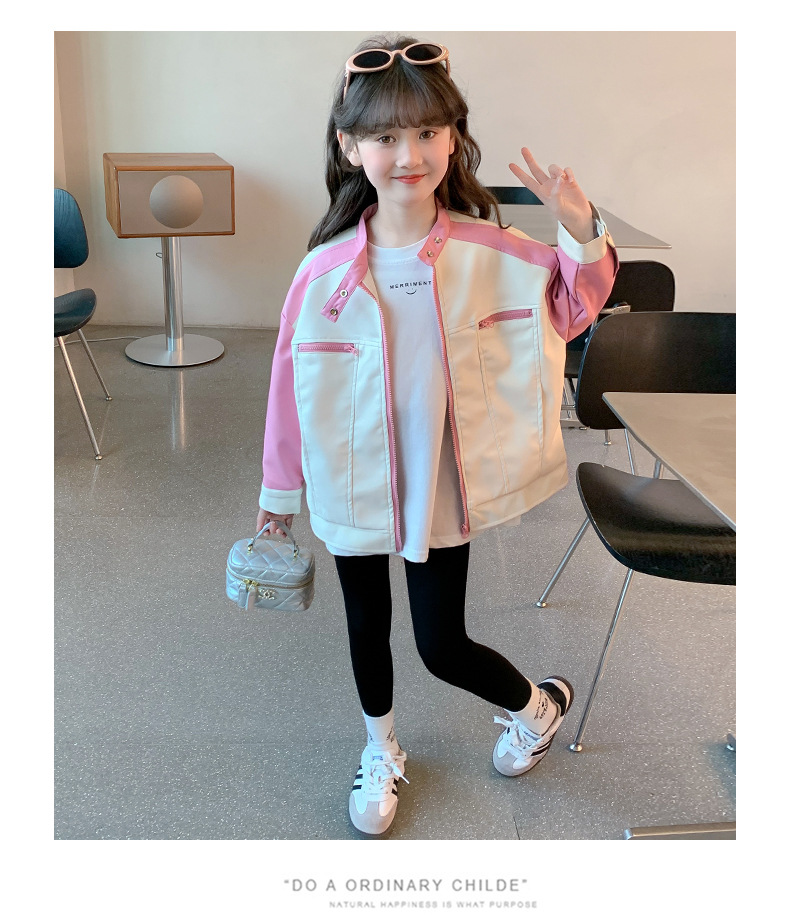 여아 봄옷 2025 신상 코트 아동 패션 가죽 자켓 봄, 가을 스타일 어린 소녀 인터넷 연예인상의