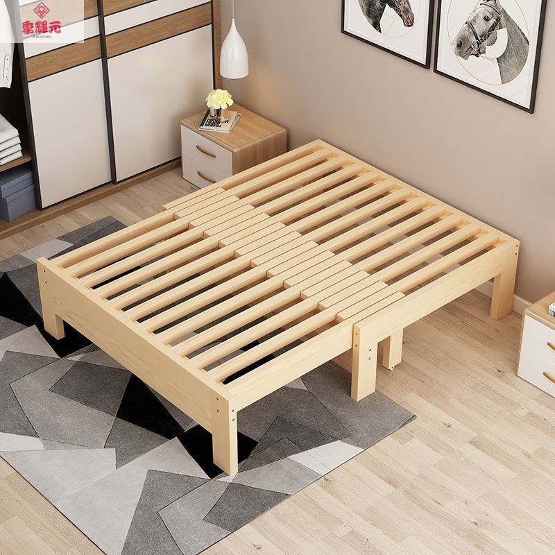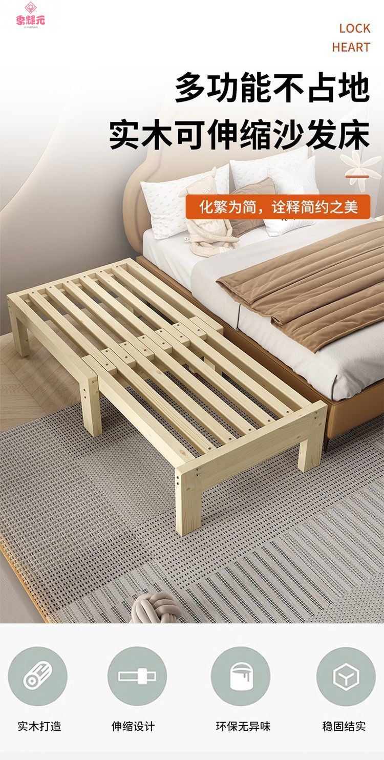 이중 목적 단단한 나무 접이식 침대 현대적인 간단한 풀 아웃 페인트가없는 두꺼운 임대 주택 거실 침실 다기능 텔레스코픽 침대스토어 가기